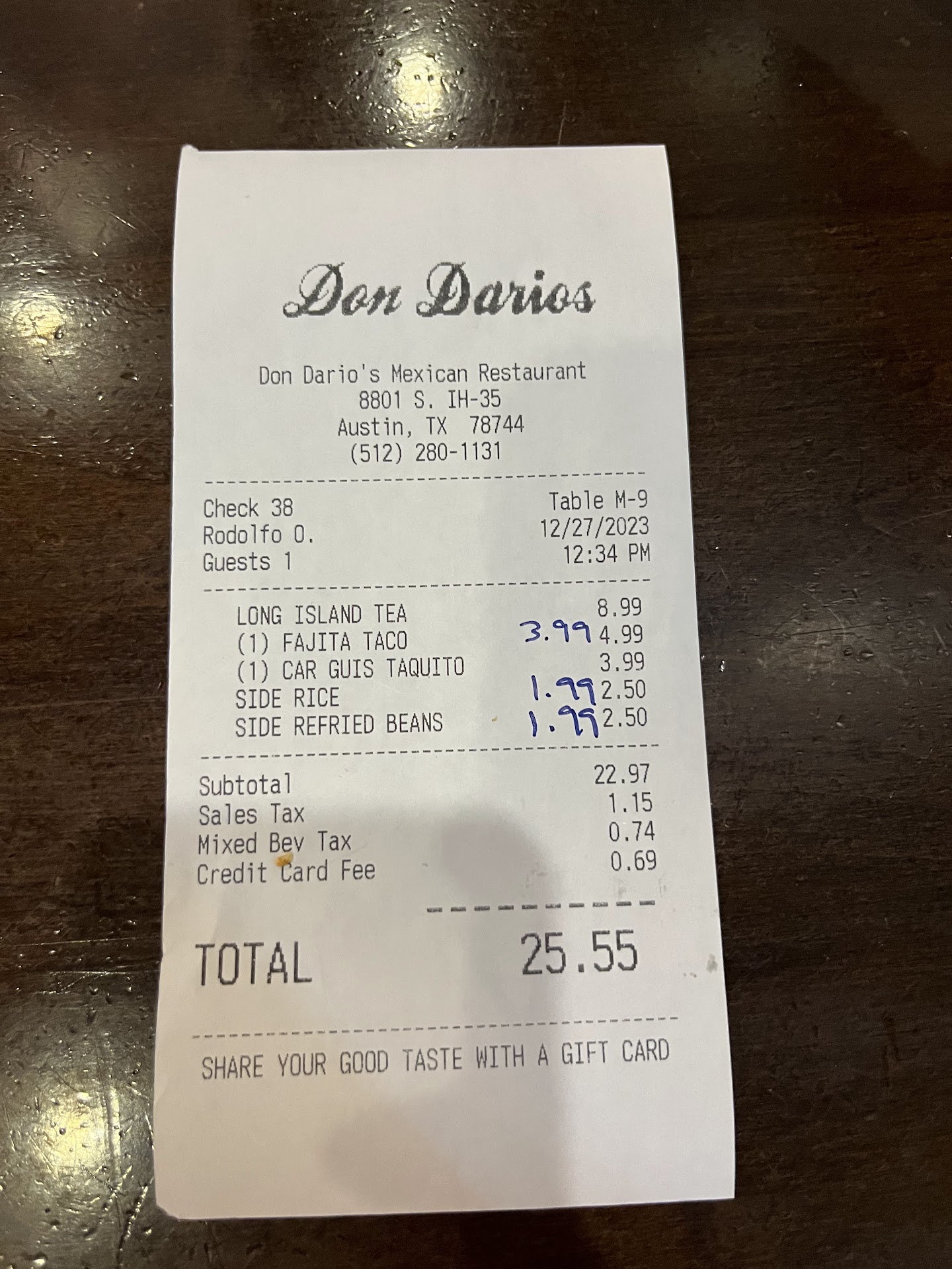 Sure there might be better Tex Mex, but thatās not the point of Don Darioās. For me, Don Darioās feeds my soul equally, if not better than my stomach.