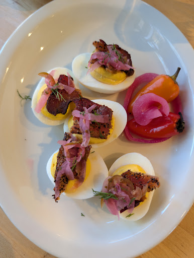 We started off with the deviled eggs as an appetizer though it did come out with the meal so there was no separation or time to enjoy it separately. We would have liked to have had 10 minutes to enjoy it and be given the items as courses as opposed to One lump serving.