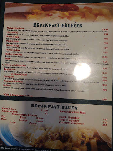 Read moreHorrible experience. Walked in at 10am no one in there. Waitress sat down and told us to sit where we want. We sat. Another waitress waited on us. We asked for chips and salsa told it cost $2. We said ok. On the menu it stated chips are free if you order breakfast item🤔🤔. We ordered. She brought our food said if we needed anything else and never came back. We needed more water but she never came back. We got up and went to pay. As we were paying another customer walked in and both waitresses rolled their eyes. Food was ok. Homemade tortillas were hard The floor had old rice under the table that was from the day before. Small bugs that you had to swap away. It was not the cleanest place and the service is horrible. Oh and they still charged us for the chips and hot sauce. Not...