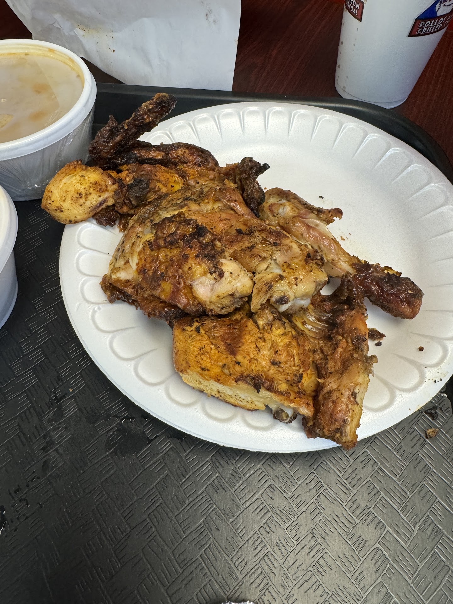 Read moreFrom here there's a few things we at work like to get, the baked potato that is delicious or the hole chicken that is also great, the potato feeds a fatty like me very well, I like the green salsa to go with it, all there food is great but in my opinion there barbacoa tacos are to to dry, ant this is something that needs to change, it's a good thing because there isn't any fat in it ( which is very bad for y'all) but for the Mexicans like me that grow up eatting it every Sunday we need that, still food is great and will not stop going...