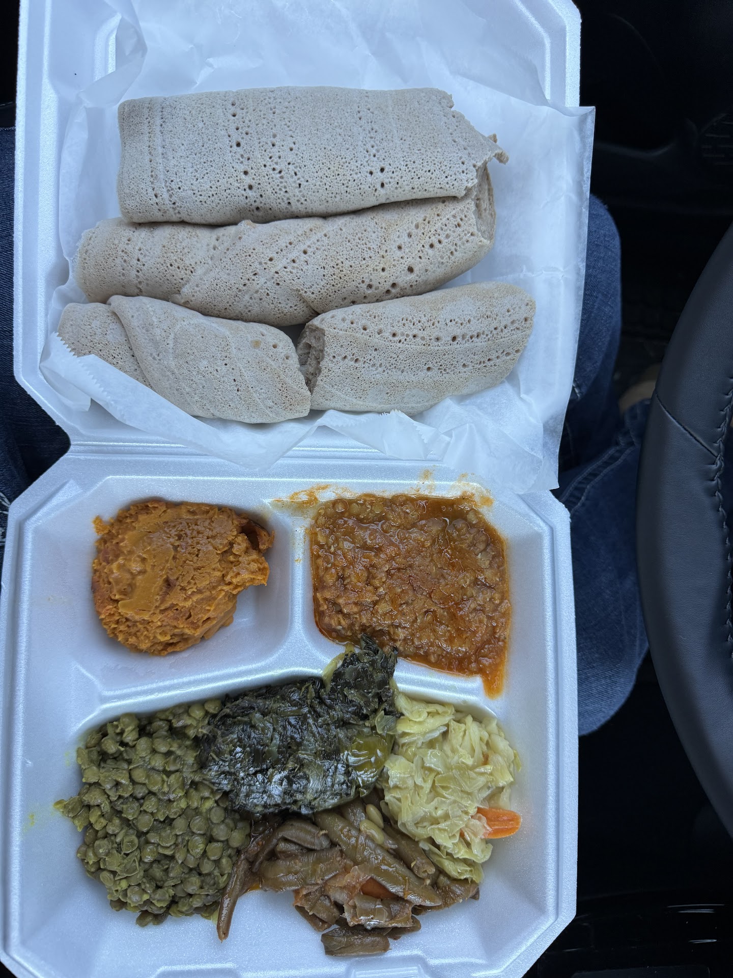 Read moreI've eaten at at least a half dozen Ethiopian restaurants, and the food at this trailer is definitely the best. We got the awaze and shekla - a dry beef dish that doesn't have a sauce. Both were good but the shekla was superb and the reason we sought out this vendor when we were in Austin recently even though they had changed locations since the last time we were there and it was over 100F - not exactly great weather for eating outside. The shekla had a perfect charred texture and stir fried flavor and is served with onions and fresh jalapeños. We also got the veggie offering which includes two kinds of lentils, greens, cabbage, and green beans all seasoned perfectly. We even ate the injera under each that was infused with the flavor. Can't...