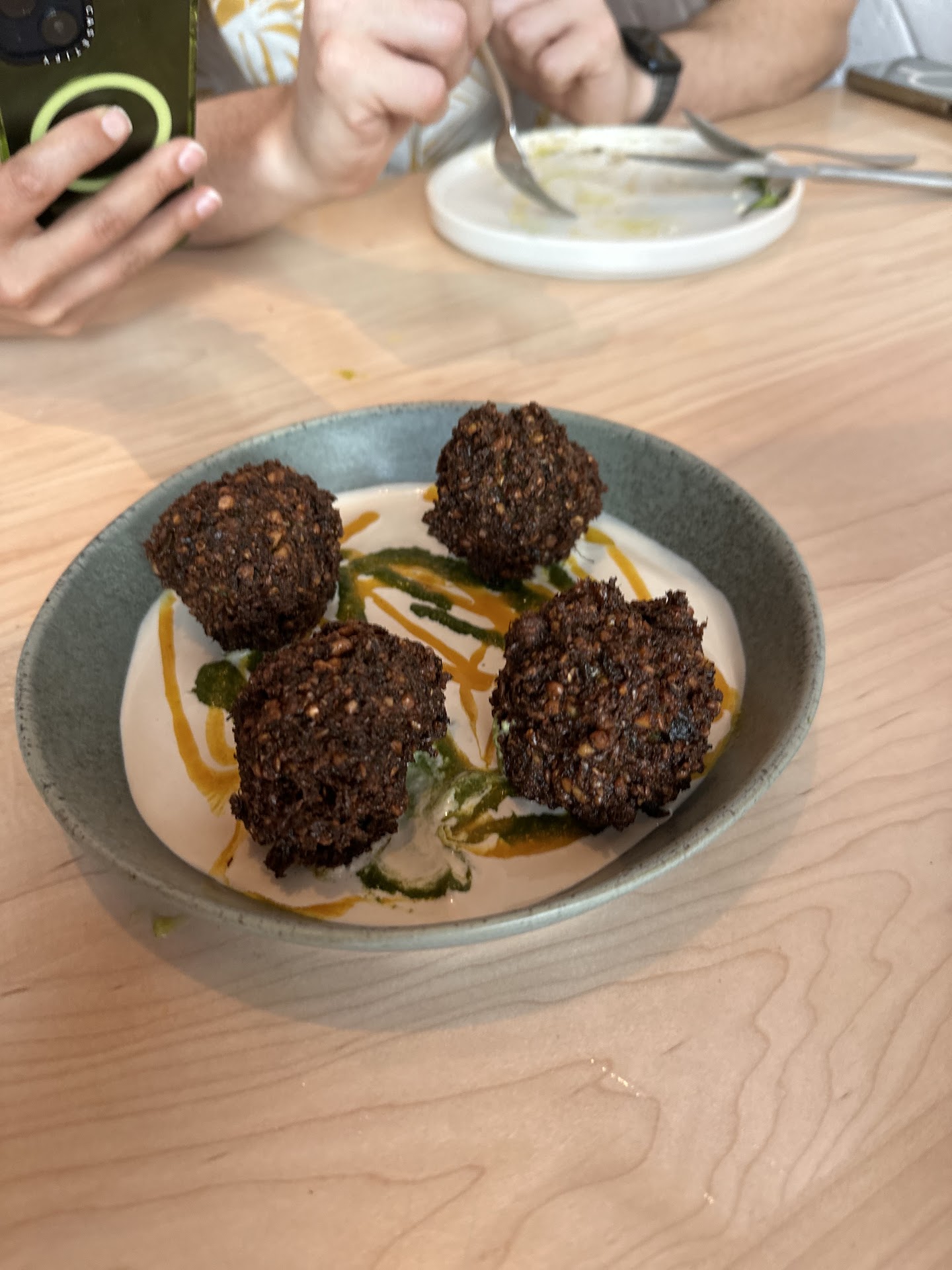 Read moreWe booked a reservation for this restaurant on October 8, 2023 and we were excited to try this place as it had decent reviews and the menu looked great. Once we got there, our server Sarah suggested that for a party of 6 to order between 10 to 14 dishes but the menu has a maximum of 14 dishes. We expressed that we wanted more time to look over the menu and might order an entree each person. She expressed that “due to how the kitchen works” if we order the same items from the menu, that the kitchen can only bring out the food one by one as it’s done. It seems like she wanted us to all order different entrees but I’ve never heard of a kitchen not being able to control their food completion time. When she came back to take our order, she seemed a bit annoyed that we decided to not order all different entrees and wanted to share entrees between couples. She again said that “due to how the kitchen works” that the food can’t be controlled how it comes out and will be brought out as finished by the kitchen. That’s fine with us but seems a tad annoying when you’re trying to be controlled on what you’re trying to order and it felt like we were being upsold to order more when 9 dishes were enough for 6 people to share. Additionally, $13 for a hummus dish without any chips or bread to use and you have to pay another $6 for a small dish of bread? A little ridiculous. The food was ok, but the experience ruined it for us. When the individual who brought out the forks and knives come by, she was scratching her stomach where her shirt didn’t cover her stomach all the way and behind her apron and then proceeded to hand me unwrapped silverware to use. I mean, if you need to scratch yourself at least do it behind closed doors and not in front of someone’s face when they’re about to use that silverware to eat. We also didn’t have anyone come by and check up on how we liked the food until it was time to pay. Seemed like they were more interested in upselling the menu and was attentive at first but as soon as you didn’t order the exact dishes they expect you to, service dwindled. I would have rather spent my money and time somewhere else.