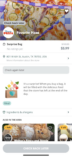 Someone at Favorite Pizza listed the restaurant on the app TooGoodToGo which is a b-corp social impact tech-enabled company fighting a major issue in developed countries - food waste. On the app, Favorite Pizza advertises a surprise bag for $5.99 thatās supposed to be worth an $18 value.