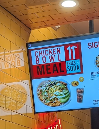 Read moreBiggest perk is that they definitely fill up your bowls and the food is served hot! But there's a few key menu inaccuracies. 1) They have a huge "combos" menu, but when my boyfriend ordered the arepas burger, they informed him that's an old menu that they don't use anymore. It's already peeling, so I don't know why they don't take it off. 2) I tried ordering the Chicken Bowl meal, which I understood from this advertisement as including fries and a soda for $11.95. I thought this was a great deal. However, I learned AFTER payment went through that it was just the bowl. I pointed out that the sign clearly advertises fries and a drink, and the woman at the counter was just like "no." If I had realized this, I would've ordered elsewhere. There isn't even any small print that notes the full meal is more expensive.