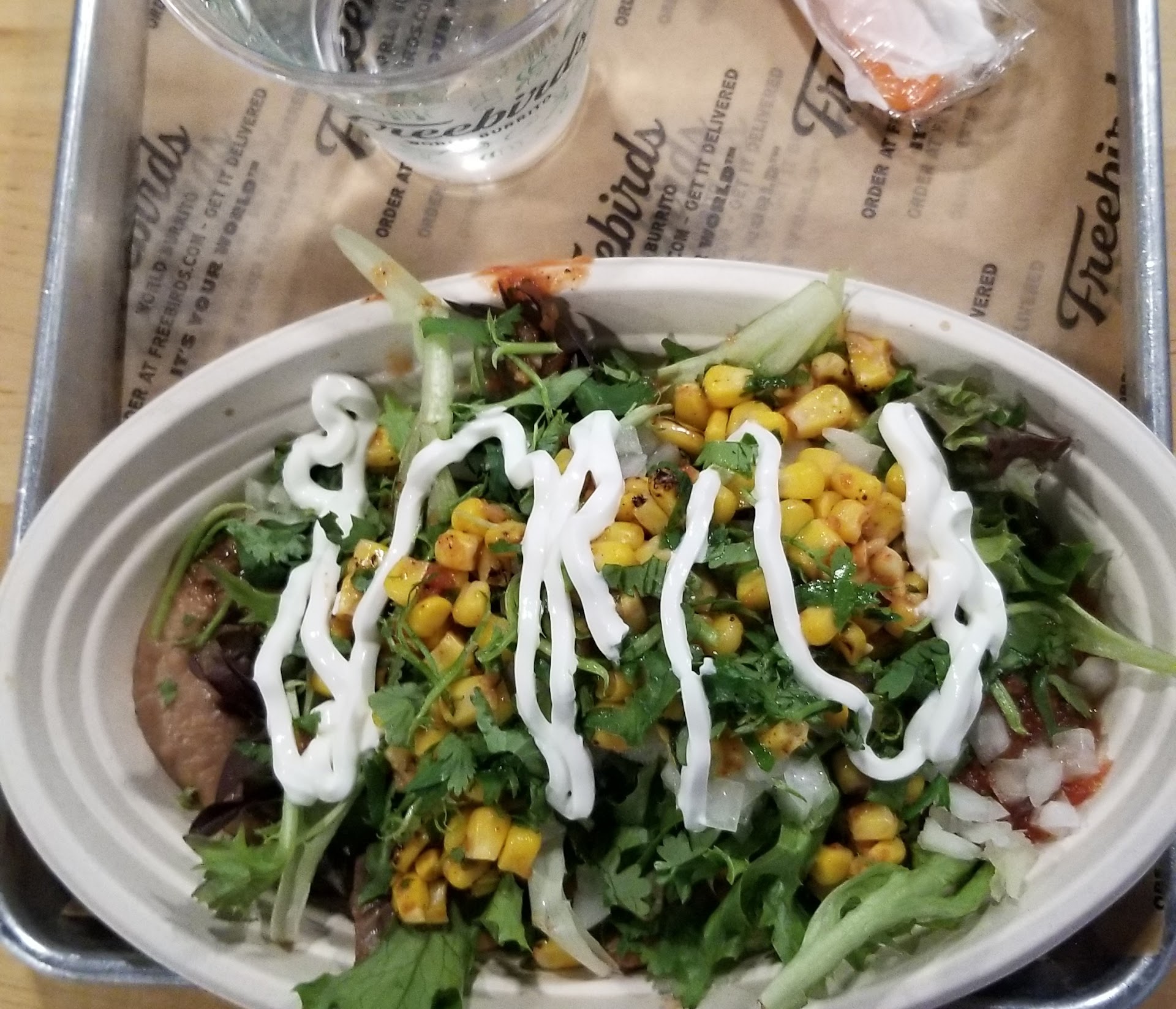 Read morePart 2 (update) Well, it doesn't seem like Doordash is the issue. Placed a pick-up order through the Freebird website (very user-friendly, btw). This time, my husband picked up the order. There was a girl and a guy working. As she was creating an order, she talked the whole time with the guy about her AP classes, etc., she finished the bowl and asked my husband if it was his. When he said the name, she confirmed it was. Had she been more focused on her job instead of flirting, maybe I would have gotten the corn salsa and pico de gallo I'd added.