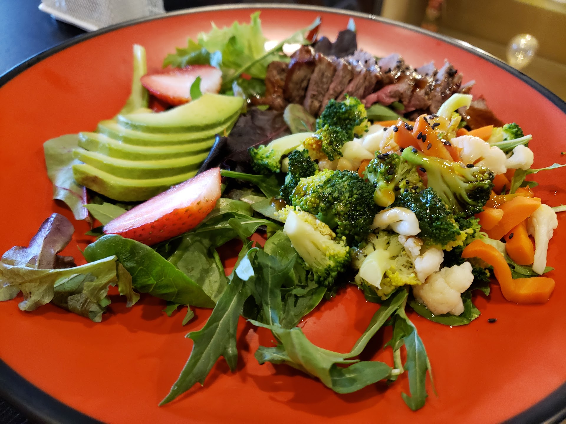 Ā Ā Ā Read moreI live nearby and recently noticed that one of the spots in a heavily vacant strip mall had a new restaurant inside. I decided to go check it out today and was definitely not expecting the experience I ended up with! This place has a heavy focus on "healthy" food, which isn't something I generally seek out. Everything I had was great, though! I had the 8 oz sirloin cooked medium and ended up eating that without the provided sauce on the side because the flavor of the meat itself was just so good. It was perfectly cooked, too. I even ate the bit of asparagus served as a garnish and last I'd checked I didn't even like asparagus!