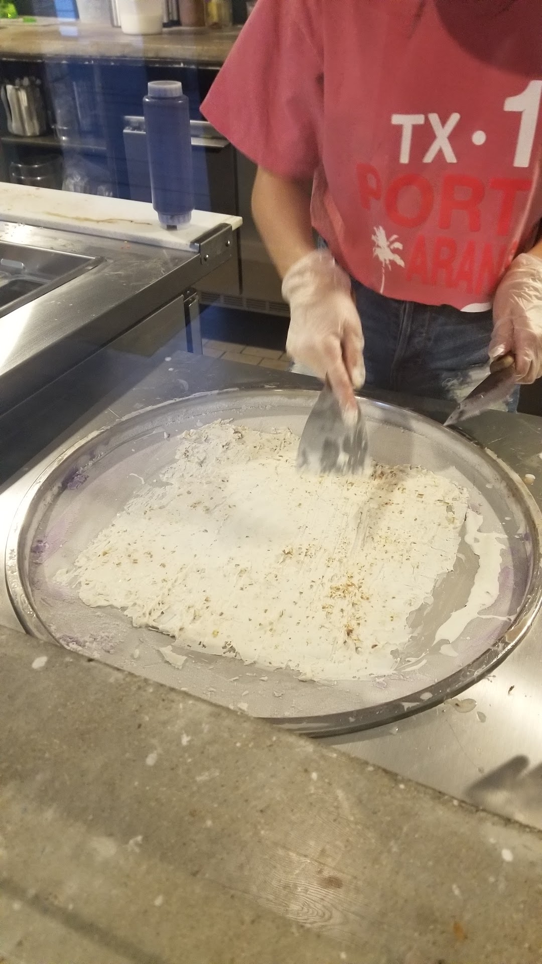 Read moreLast night, we were searching for a late-night snack, and my husband suggested we go to this place. I DO NOT recommend this place! While we were checking the menu, these two guys were talking in a foreign language I saw them point to me and my baby who I was carrying in my arms. Is there something you would like to say? However, I told my husband that I wanted a "Chocoholic" dairy-free and my daughter and I went to the side where they make the rolls. One of the men comes and asks me, kind of loud, if I have any allergies and I answer him, "No, I have an intolerance" he proceeds to say in an annoyed voice, "You know, I have to clean everything to make your ice cream". I didn't say anything because I didn't understand what he was insinuating. Then, he asked one more time "Do you want chocolate chips?" and my answer was "Yes, please". He began to speak under his breath in a kind of rude way with the other man that was there and I heard the other man saying "Niet chocolate chips" The man who speaks English disrespectfully told me and tried to make me feel dumb " Are you sure? Do you want chocolate chips? Because you know, Chocolate has milk" At this point, I left the place because I felt like they didn't want to prepare my ice cream with the behaviour he was displaying towards us. This also confused me because the Frozen Rolls Creamery offers dairy-free products. I would expect that they have chocolate chips dairy-free considering they advertise dairy-free options or if they do not have dairy-free chocolate chips, you can provide another option. And, about his statement "You know, I have to clean everything to make your ice cream" I'm speechless because I do not know what the procedures the staff might follow to not have cross-contamination. We just wanted to eat an ice cream. We pay, we tip. Therefore, we deserve respect and...