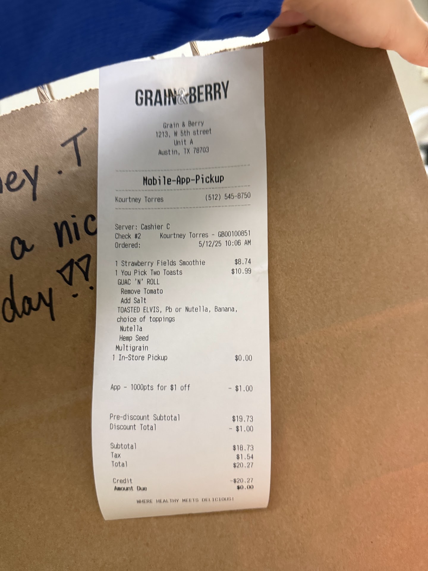 Ā Ā Ā Read moreStopped in at Grain and Berryās Austin location and tried the Healthy Elvis Smoothieāabsolutely delicious! It was rich, creamy, and perfectly balanced with flavor, without being too heavy or overly sweet. The ingredients tasted super fresh, and it gave me just the right boost I was looking for. The shop has a clean, welcoming vibe, and service was quick and friendly. Definitely worth a visit if youāre in the area and craving...