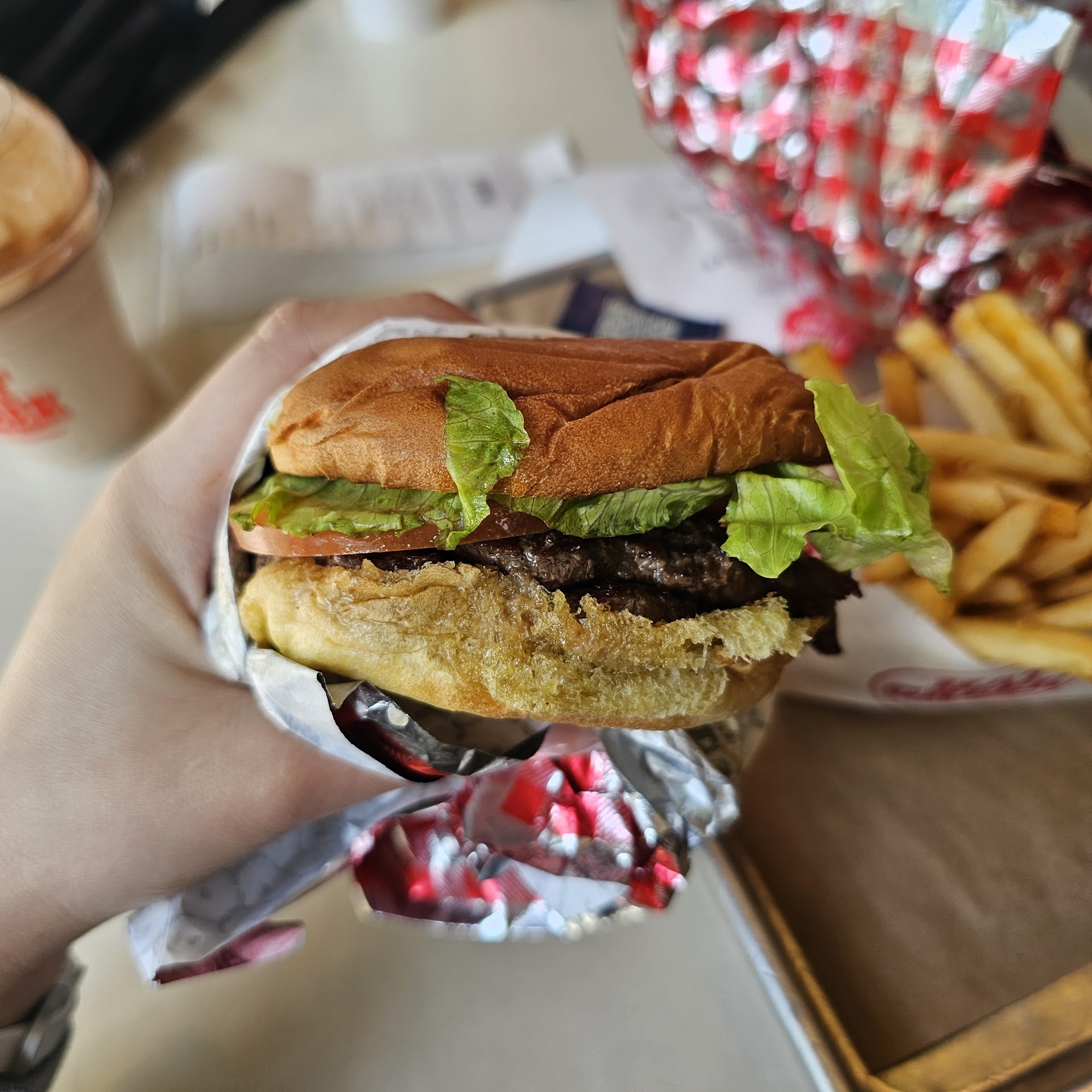 Read moreJust another over hyped, over priced burger joint.I had never been a customer prior to this visit to Austin but, thought that I would try this establisment out. Well, nothing quite started on the right foot from the get go. First, the young lady that took my order had a bit of difficulty getting it correct. Cheeseburger with only cheese and onion no "sauce", fries and a rootbeer. Pretty straight forward, no complications. Well, after a rocky start, hopefully I imagined it was going to be enjoyable. Not do fast. When I picked up my order, the first thing I noticed was, there was two(2) orders of fries on my tray. I said to the server, I don't think this is mine. I didn't order two serving of fries. He checked his copy of the receipt as I did mine and, said" you are correct". You have a "freebe". I didn't want additional fries but, what the hell. So I took my meal to my table took a sip of overpriced root beer and almost spit it over my table. Apparently my rootbeer had been sitting in the service area for or a period of time and the drink had gone flat and the ice had totally melted. Yuk!! The drink was replaced. Time for my highly rated burger. God, another failure.my almost plain cheeseburger was covered in some" secret" sauce". Another YUK!! At this point I nibbled on some fries and left. Needless to say I won't return. Pretty expensive trip for a cheeseburger, fries...