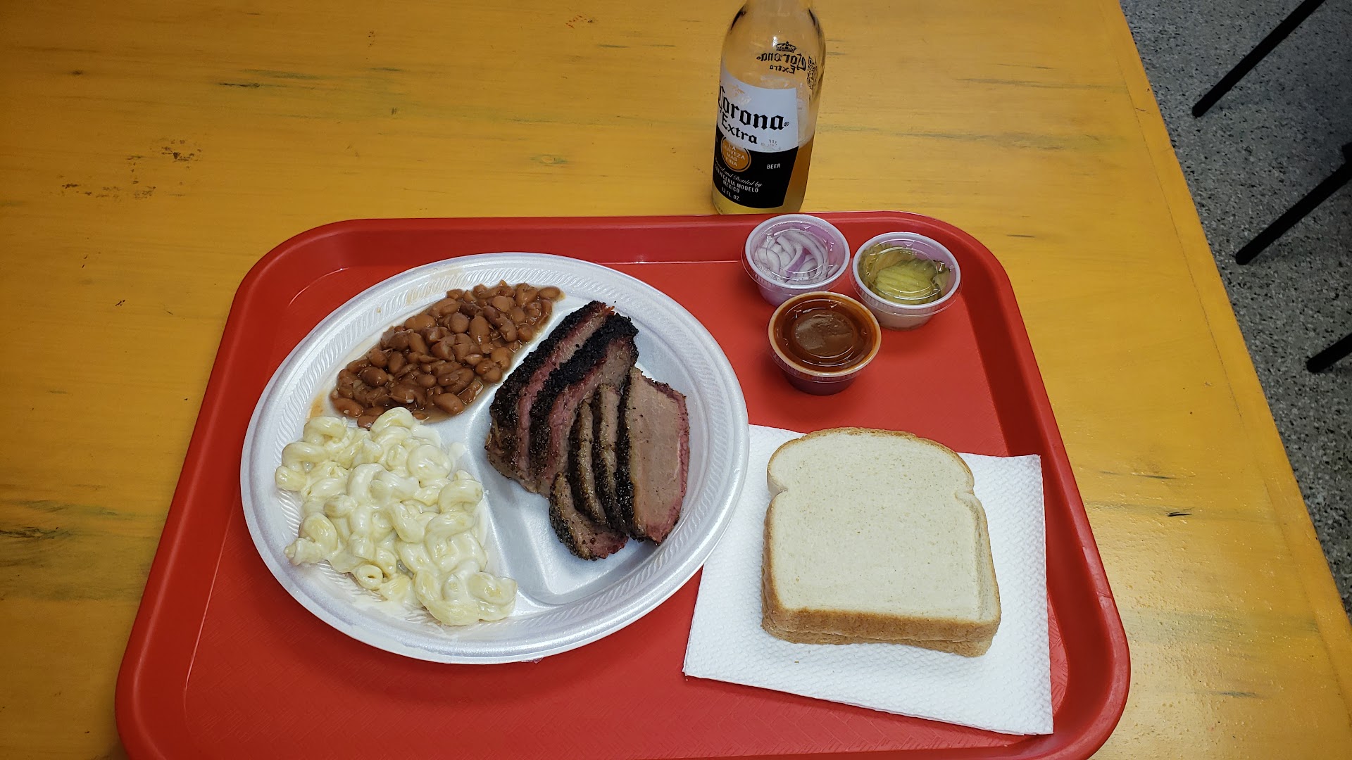 I tried the brisket with a side of mac & cheese along with a serving of beans. The brisket was so moist & tender. The food was perfectly seasoned. I didn't have to add anything. The beer was nice and cold. I very much enjoyed my meal.