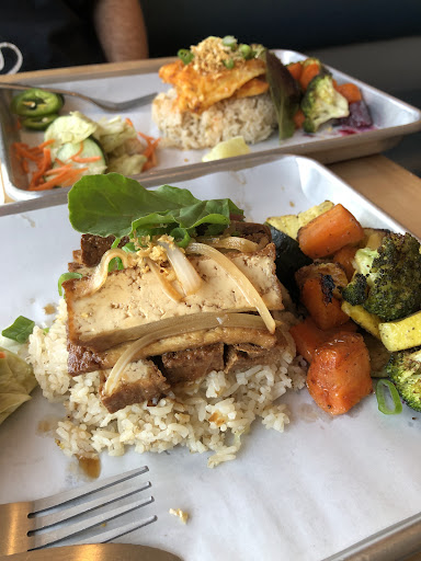 We got the tofu and turmeric fish rice dishes. The food came out super fast! The highlight for me was the roasted veggies, consisting of nicely browned carrots, squash, broccoli, and beets. I’m still drooling over the roasted broccoli! It was crunchy and savory, and not at all over-cooked or mushy (the way many other restaurants do it).