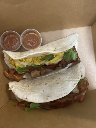 I bought a couple of their breakfast tacos the other day (eggs & bacon/ eggs & cheese). The bacon is not well cooked and looks distasteful, there was no cheese on the “eggs & cheese” one…see photos.