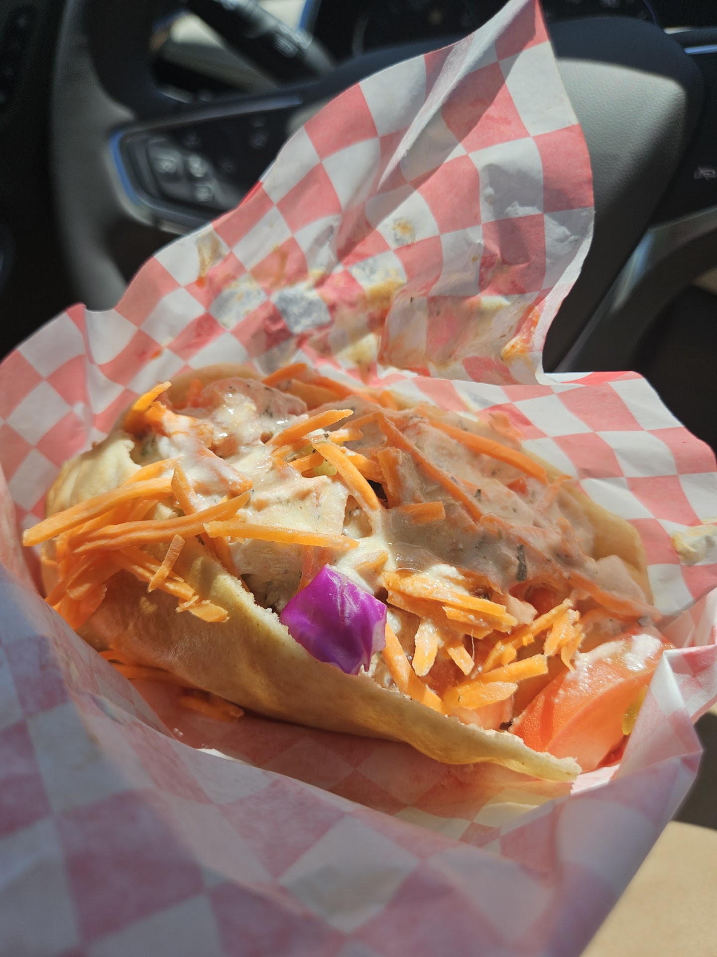 Read moreEDIT: He moved to Mueller on Airport Blvd. Located at the corner of Bolm and Springdale, Hippy Eats is a quiet refuge from the overly car-riddled areas of the rest of Austin. The food park is so quiet. It's so close to the Southern Walnut Creek trail so after a good ride, walk, or run, the Hibiscus-Lemon-Rose Water tea will cool ya down. The pita and hummus (oh, hummus and pita lol) is so simple and yum and there's so much hummus to do a huge dip-and-scoop with each piece of pita. The Thai salad is so daggone fresh! So regretful it took me 3 years of north Austin living to try it. Don't be big dumb like me and go...
