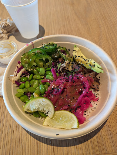 Read moreThe food was amazing, I mean truly I would eat it everyday if it was at a Chipotle price point. I gave only 3 stars unfortunately because the manager/owner was using the dining area as his personal office, taking a business call, with noise canceling headphones so I had to listen to him loudly lecturing who ever was on the call about putting the forbidden rice away and not leaving it in the office, and not filling the bowls so full during rushes, and how an employee had typos in their links and weren't receiving links to sign up for their benefits and other such things that seemed some what personal. At almost $20 for a bowl and a drink you would think they would be able to afford and office for such things. It's really a shame to because the food really is perfect and the employees are superb. My only other issue is that you can't order on Door Dash or UberEats, because I legit would have ordered three times this last week. I had to order Modern Market Eatery instead, they are good but I prefer...