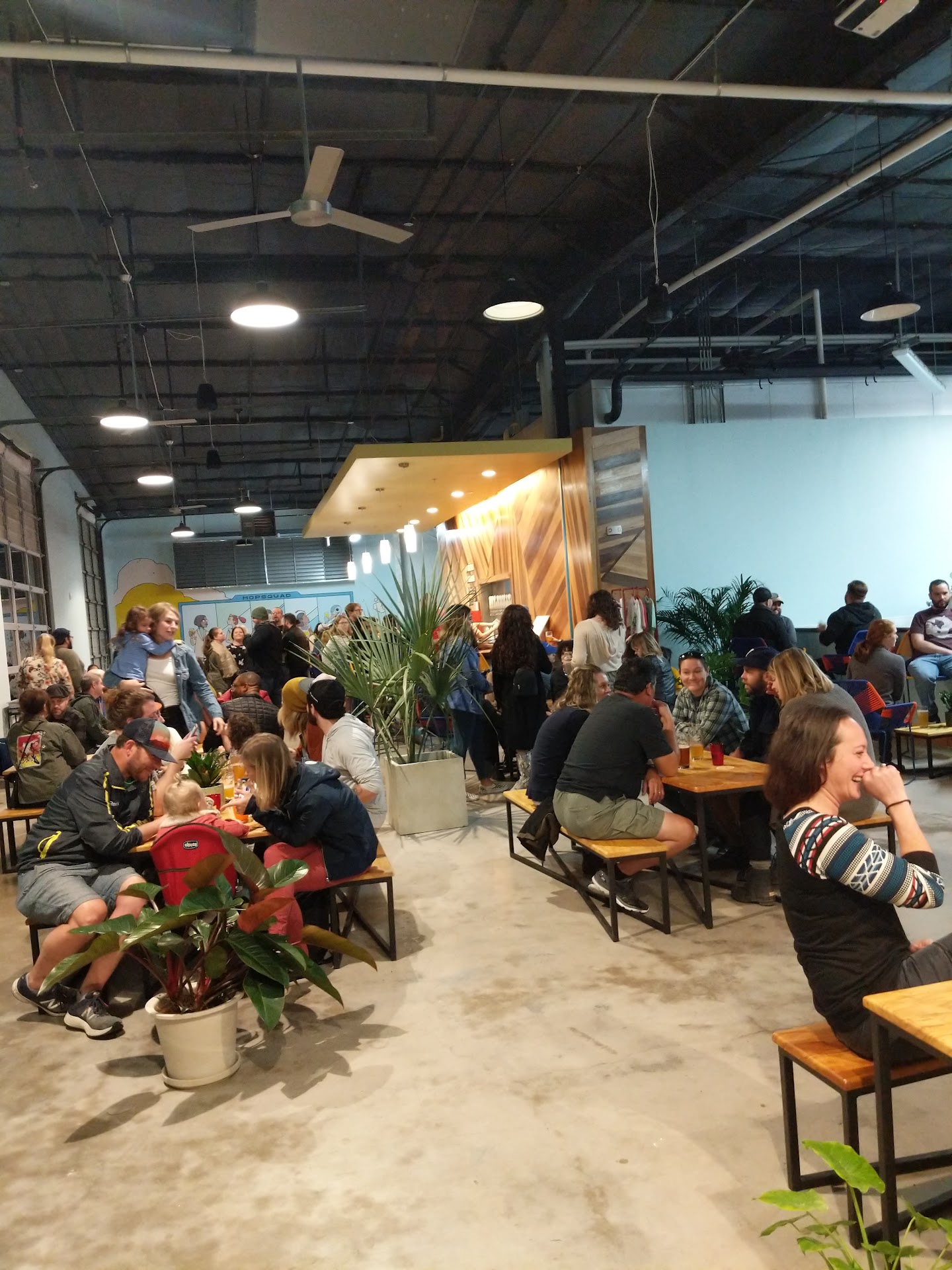 Facility is great! Wonderful bathrooms, cool tap room with a neat vibe. Great overall place that way. Parking is a bit of a pain. Search around though and you'll find something. Now the most important part of a brewery and unfortunately where this place fell short for me, the beer. The good; the session IPA was OK but seemed a bit unpolished and needing more bright tank time. It was overall decent. The Lord Zanate IPA on the other hand was just plain bad. I heard the same refrain from several people around me. Wayyyyyyyyy too malty for an IPA, like heavy malt wafting on the nose malty. Someone clearly loves the dreaded crystal malt here...not a good flex. Almost no hop aroma and just plain sweet like an amber ale...so odd. Really disappointing. Being that I love IPA's I had such high hopes with their hopsquad name after all. The saison was OK but in truth that's not a style I enjoy too often. The roggenbier was alright I guess but just not an exciting beer style for me or my group. I'll come back later on in a few months to see if they've tweaked these recipes and fixed some of the noticeable flaws. I still have hope they'll get it...