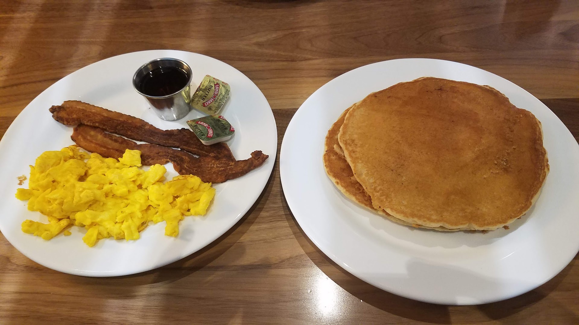 I do not like the change they did with this place. It was so nice as a restaurant and now it's just confusing. They gave me 2 tiny butter packets for two big pancakes. Understandably it was not enough. I had to go back to the side were you order and wait forever for the people who were paying so I could ask for more butter and syrup. They then gave me two more packets and one more of syrup. At this point most of my food was cold. The scramble eggs were tasteless and the bacon burnt. Not a good...