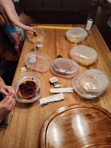Ā Ā Ā Read moreArrived at this near full parking lot at the restaurant with my two grandchildren 10 & 8 on Sunday morning at 10:45. We had a 24 min wait just to be seated. There appeared to be some chaos amongst the staff with each telling the front greeter to do different things. Our table was still wet from being wiped when we were seated. Our waiter informed us the table beside us āhas been waiting over 30 min for their food, thatās why I was fighting with the manager about seating any more people when the kitchen is so backed up.ā I thought this to be inappropriate to discuss with a customer. We gave our drink orders and he left us with menus and we made our choices but waited over 15 minutes before our waiter came back with our drinks. He put them on the table and carried on before asking us what we wanted to eat. We watched as he took orders from people seated after us and I had to flag him down to put our order in after we had already been seated 25 minutes. We waited the expected 30 min after ordering only to have our waiter come tell us the kitchen had cancelled our order so we had to put it in again! We did and asked for refills on the drinks. Waited another 20 min before coffee refill showed up. I entertained the kids with word games but they were naturally getting irritable and fidgety by this time. Another 25 minutes went by before our food finally showed up, but in all that time our waiter hadnāt ensured we had cutlery so our food got cold as we waited for utensils. We were eventually given plastic take out utensils ābecause they were out of clean cutlery.ā While we ate the cool but very delicious food (the only high part of the experience) we could hear someone yelling at the staff about doing things wrong and messing up, etc. VERY awkward and very inappropriate for a person in authority to do to staff in front of customers. We left with our food in containers to escape the manager (?) staff arguing. Despite the pancakes being so tasty, they werenāt worth the poor service or atmosphere! Even 8 commented that itās not nice to talk to the waiters like that in front of customers. Pity an 8 yr old knew more than the staff leader who obviously was not demonstrating the skills to lead and run a...