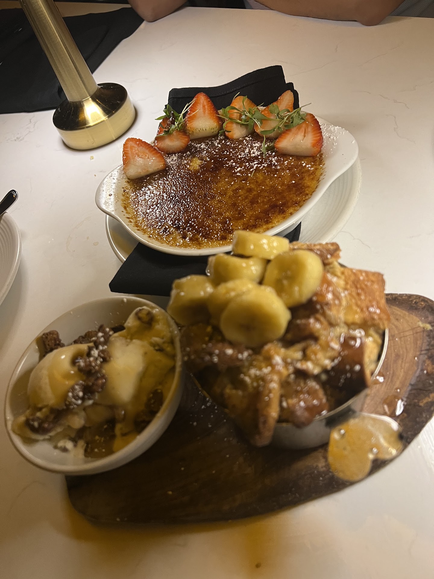 We were thrilled when the mains came! 45oz tomahawk (you choose the size over 40oz, it was super charred and topped with an herb butter, cooked to perfection.) The potato gnocchi is a MUST have!!! The corn crème brûlée side was good but i didn’t get a true creme brûlée feel, just call it sweet corn dressed up, yum. The glazed carrots were perfectly dressed and soft, big fan!