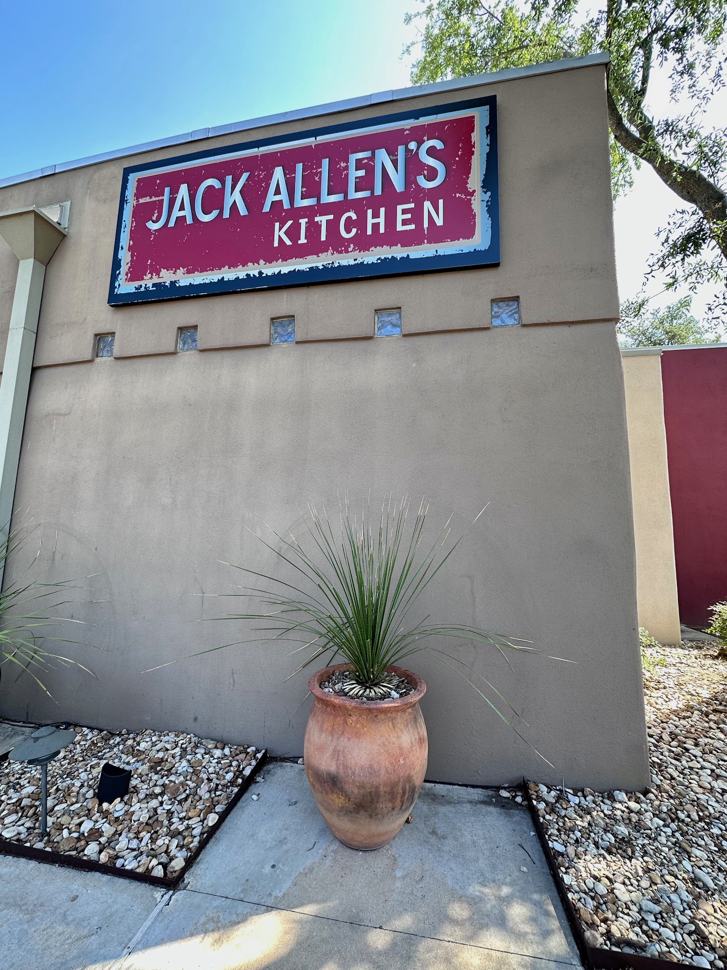 We had lunch at Jack Allen’s Kitchen on a Wednesday and the place was still busy, but not as bad as on Fridays. Usually has complimentary valet parking but not on this day. Highway construction on SH 71 is starting to creep near this place and the turning lane has been removed where have to be careful crossing lanes to either get here or leave.