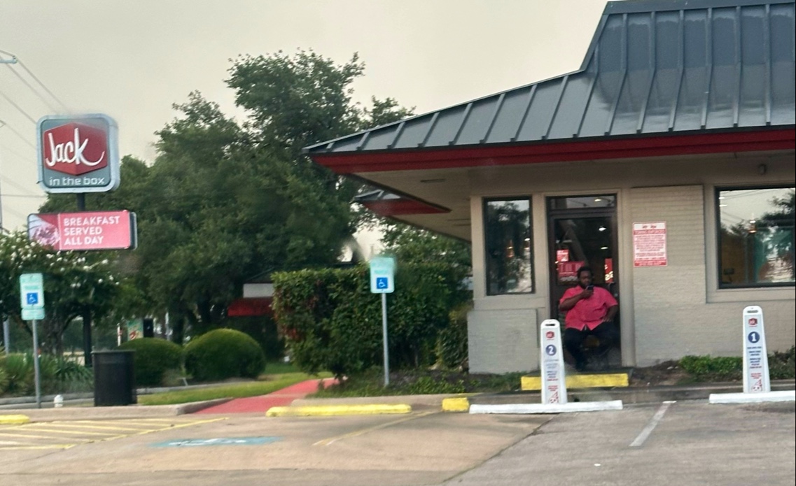 AND, WHOMEVER OWNS THIS JACK IN THE BOX, WHY DON'T YOU BUY A NEW AC FOR THE PLACE??? SERIOUSLY? A PORTABLE AC UNIT IN THE KITCHEN DOES NOT COOL OFF THE RESTAURANT!!!