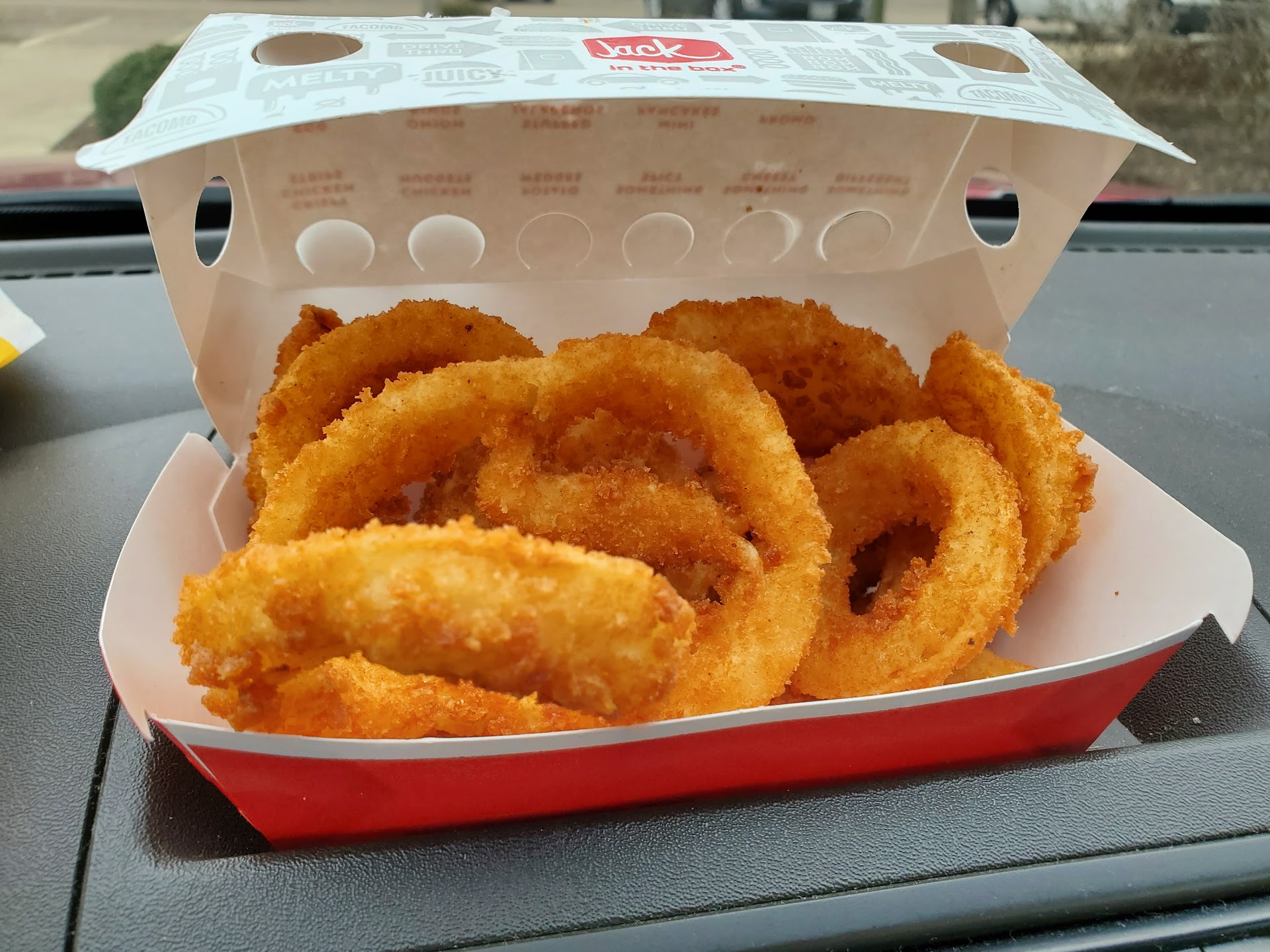 Read moreThe employee in the drive thru was very easy to understand and incredibly friendly. She seemed to truly like her job. That's refreshing to see in a fast food establishment. I ordered a small hamburger without the ketchup and mustard. Instead I requested their Secret Sauce. This is the true test of a Jack in the Box employee. More than half of the time employees have no idea what I'm talking about. But not this time! Double stars simply for that! I arrived during the beginning of the lunch rush and anticipated a long wait (customers know things are made fresh, so it takes a bit longer here to get food as opposed to other chains--an acceptable trade off). But to my surprise, my wait was short. Score! I drove away and checked my food and found my onion rings cooked to perfection and the hamburger made to my specifications. My only complaint is that there was very little Secret Sauce, so much of the burger was dry (see photo) ☹ I will be back though; next time I'll just request extra Secret Sauce and see if that fixes...