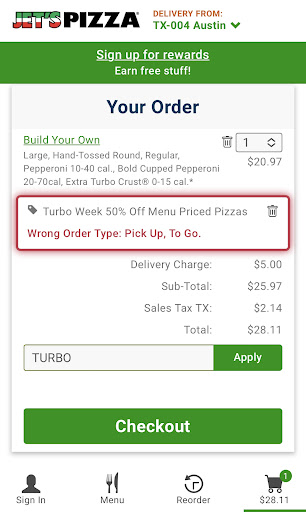 Read moreSo I had Jet's pizza for the first time at the Cowan Carnival this past weekend. It was delicious. So later in the week, I was thinking of the Pizza and decided to order delivery. So I ordered the same thing. After the delivery time passed by 10 min, I waited. Another 10 min, still no one. So I called to check on my order which is now 20 minutes late. They looked it up and told me that it was out for delivery, but the driver took 3 pizzas with him, so it should be coming soon! Another 10 minutes and the pizza is delivered. I sign for the $20 order. I go to the kitchen, open the box and it appears that the pizza is over cooked and somewhat hard. On top of that, it's wait - I don't have to tell you, but I will - cold. Well maybe cold is a little harsh, but not hot and barely mildly warm. Of course after 2 bites it was gone from barely, mildly warm to cold. I'm guessing if you went to the store, it would be great.
