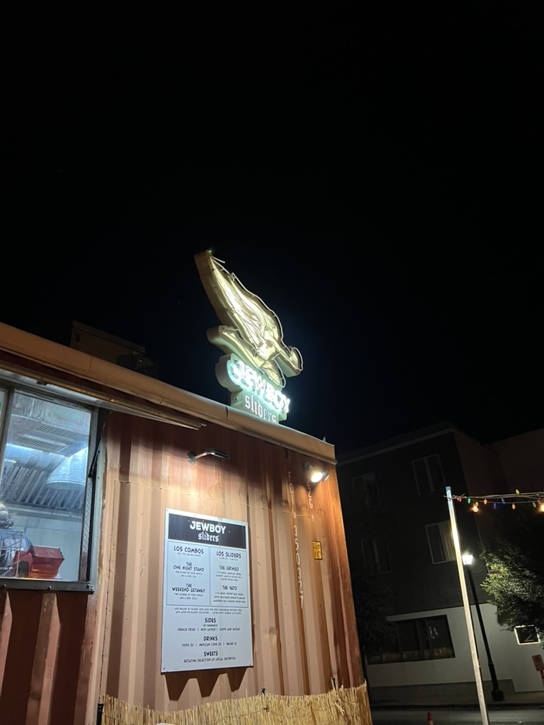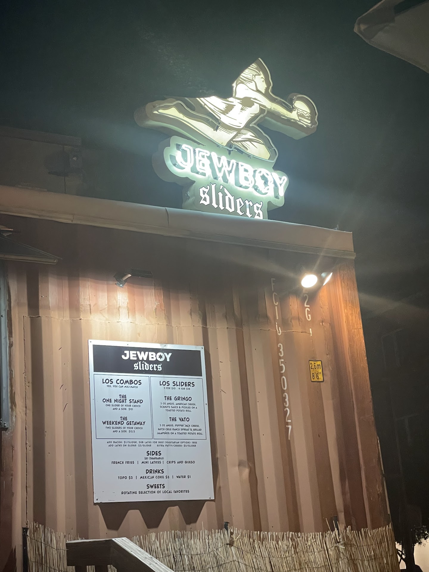 Coming from Seattle - the land of nonexistent late night food - I was hungry and a bit tipsy exploring east austin. I had planned to grab some tacos somewhere, but (as a jew) was intrigued by the name of this truck. Sure, for $10 I'll try a couple of sliders, sounds good. After ordering though, I learn they have latkes.... I try to order them, and I'm essentially told "don't worry - we'll hook you up".