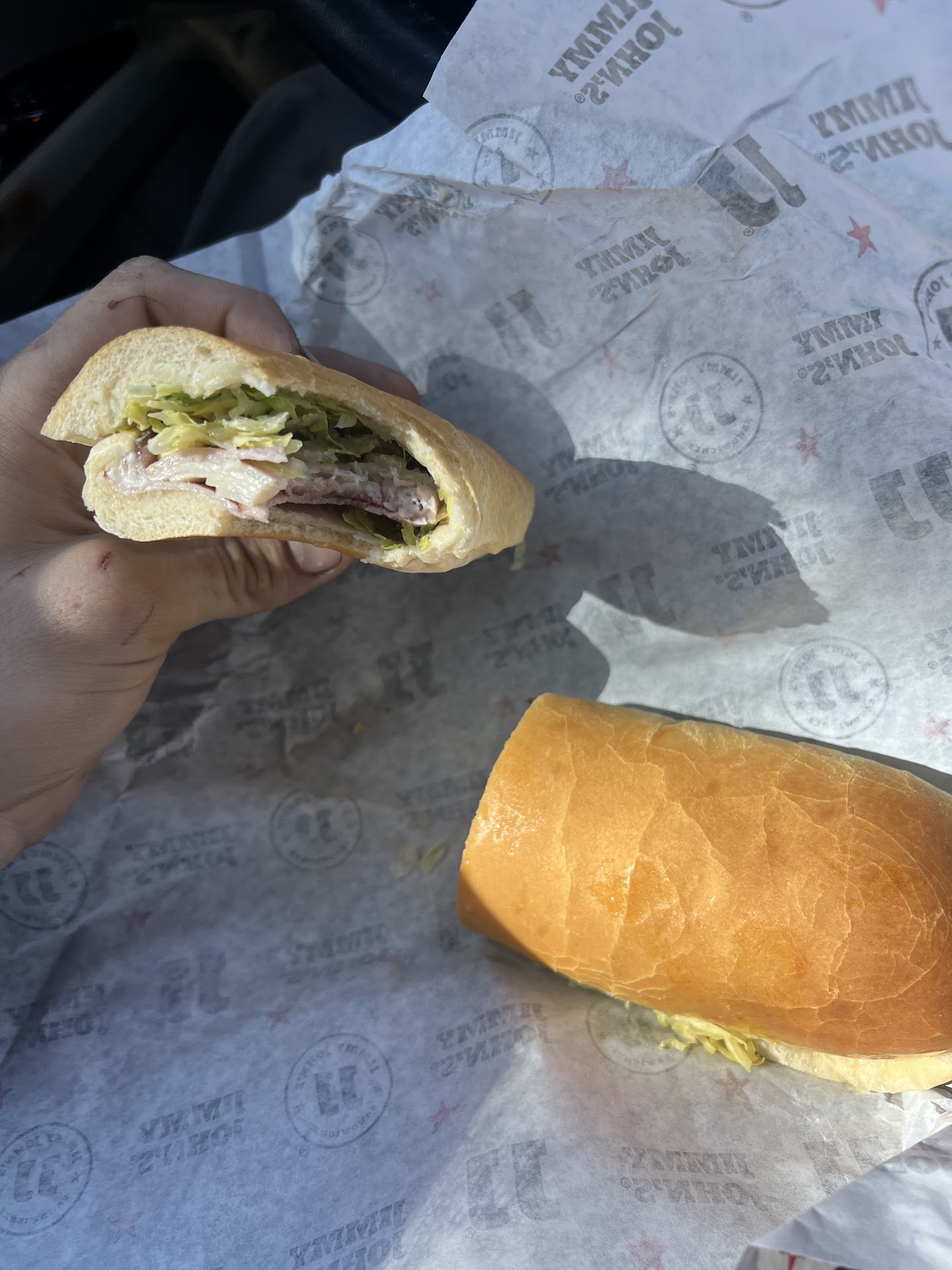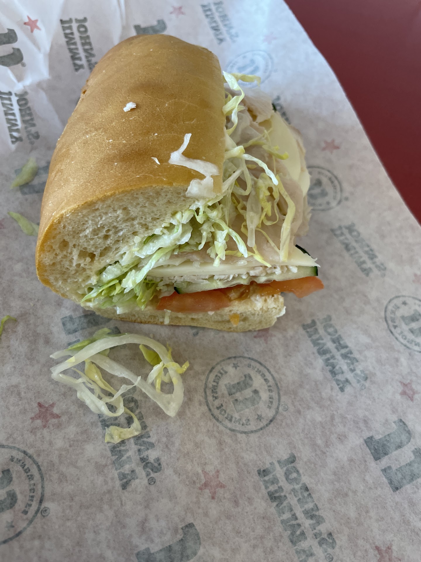 From the first time I tried a Jimmy John's sandwich in Chicago at a new store opening some 20+ years ago, I have absolutely loved their sandwiches. I always get a #6 Veggie (best sandwich ever) but have had bites of many others as my family experiments each time we visit. I have yet to have a bite of a sandwich I didn't like. This specific location is new, close to my home (yes!), and lives up to the Jimmy John's standard I have come to love. The restaurant is always clean, the wait fairly quick, and the staff competent, attentive, and kind. One man, who may be the owner, works especially hard at making me, his customer, feel like my business is appreciated. Oh! And they generously offer a military discount at this location (not all locations do) so don't forget to ask for it. Finally, they have a rewards program that was fairly easy to sign up for which gives you free stuff after a certain number of sandwich purchases. I have already earned and redeemed a free sandwich and today I just earned a free bag of chips. Awesome! (Clearly I eat here too much. Ha!) If you want a great sandwich served by a great staff, visit this Jimmy...