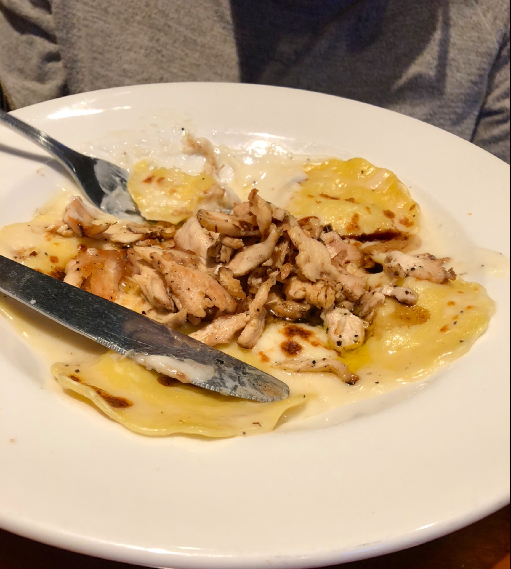 My friends dish looked ok but the sauce was a color that made me think it had a skin on it (sitting on a stove all day) and she did not eat all of it (albeit, we were pretty full on apps and bread (also we werenât immediately served bread, we had to ask for it - which came after our apps, I thought at this place you get that first with drinks like chips and salsa at a Mexican resto? Idk, I could be wrong)