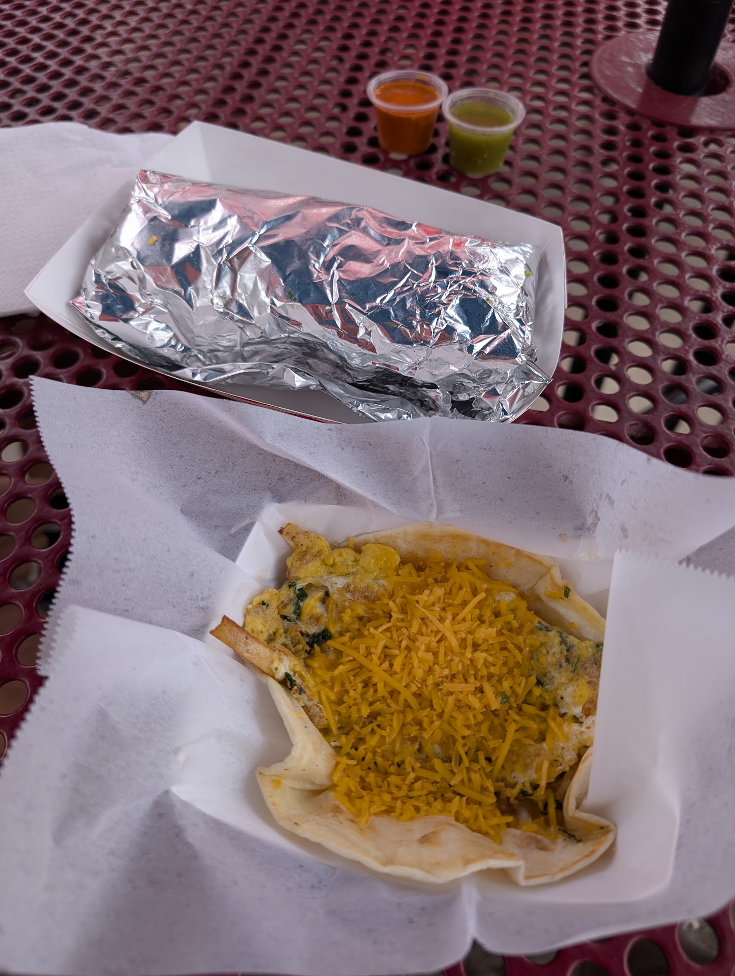 I had the breakfast taco with bacon and egg, and it was perfection. The bacon was crispy, the eggs were fluffy, and the tortilla was fresh and warm, tying everything together beautifully. My wife had the potato and egg taco, and she couldn’t stop raving about how perfectly seasoned and satisfying it was.