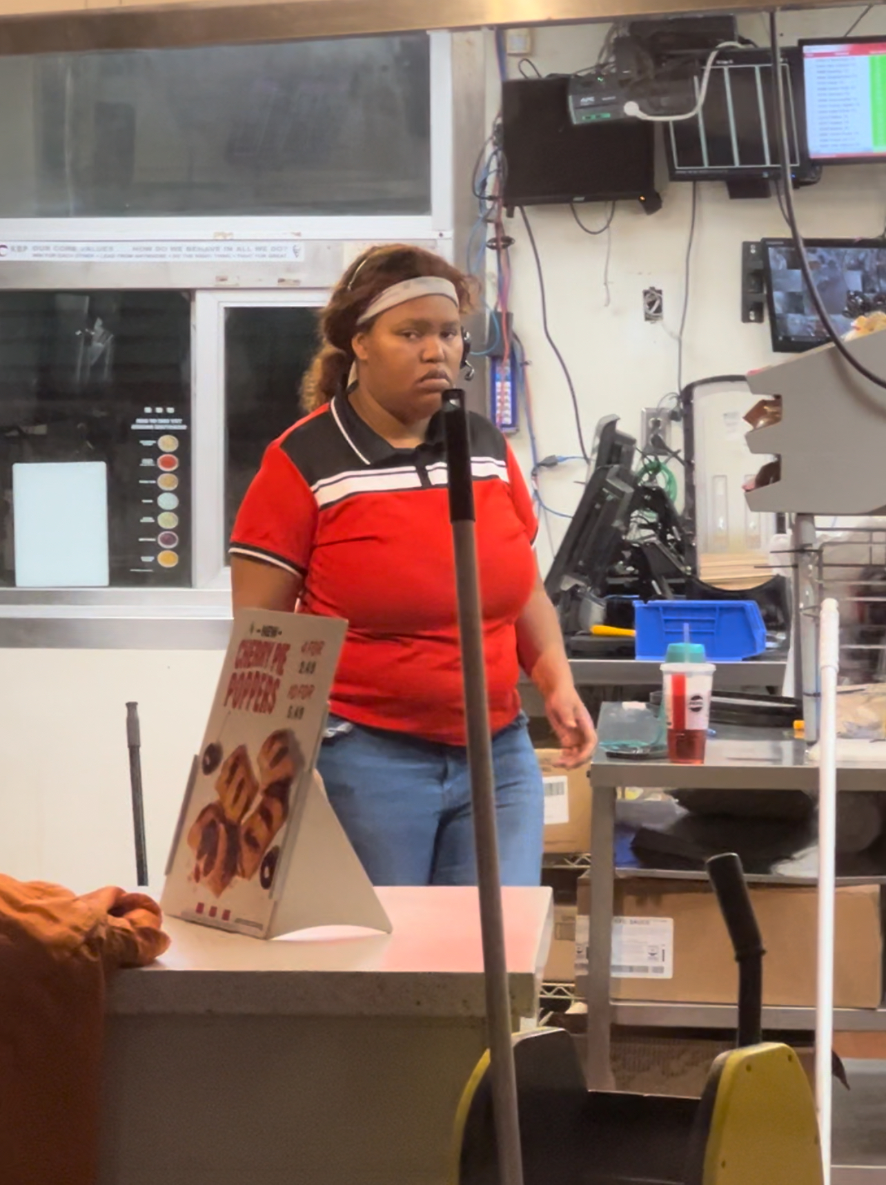 The photo is one of the two female employees who were being disrespectful, trying to close shop quickly when its 9:30pm and they closed at 11pm. Both attempted to gaslight me as if any sane person would wait over 20m for fast food fried chicken that clearly should not take that long I ended up driving to the KFC 8 minutes away after making my review and got my food minutes after paying.