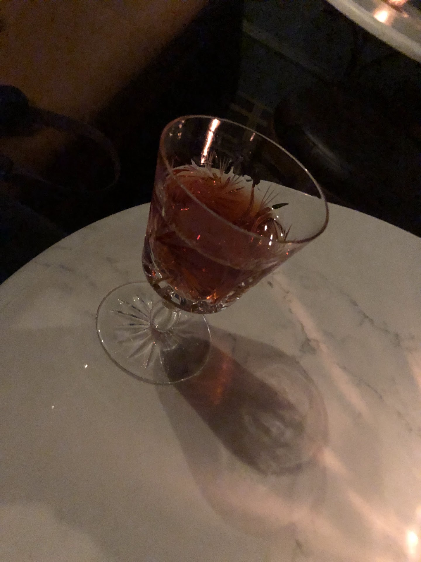 This place is oozing with potential. They definitely put a lot of thought into guest experience, setting, and drink concept. You check-in at the Moonshine hostess stand, they lead you down a staircase to a basement location, and then they seat you with some cucumber water (personal preference is regular water but just personal preference). The welcome drink is a gin and scotch riff on a Negroni. I’m not sure if it changes nightly, or if they’ve settled on that as a way to acclimate your palate. I love Negronis, but I think it’s a heavy drink to start off with. I like the idea of an aperitif, but I don’t know if I want to start off with something higher on the alcohol content if I’m just having drinks and light bites at most. I loved the general atmosphere of the space. Great music playing, cozy upscale cave vibes, and amazing staff. They have awesome leather coasters embossed with their logo, and their concept for a “family tree” of classic to modern cocktails is such a win in my book. The menu itself felt a bit flimsy compared to the (whiskey-heavy) spirits book, so I hope they refine that after being a bit more established (low priority). The First Time Caller is amazingly round with your first few sips, and generally an interesting cocktail. My partner had the Mamie Taylor, and neither of us were big fans. He loves ginger, but the ingredients in this cocktail didn’t feel like they belonged together, at least in those proportions. For all I know, this is the best version of this type of drink and it was maybe just not the drink for us. I only tried two drinks, since the welcome drink was a bit heavy, but overall I would say this is a great new spot, and I recommend it. If anything, I may just be a bit critical and honest, because I want this to succeed, so definitely don’t take any criticism as a...