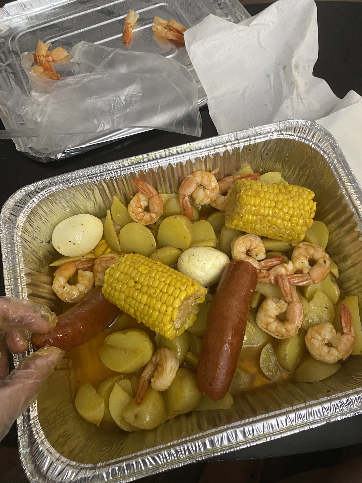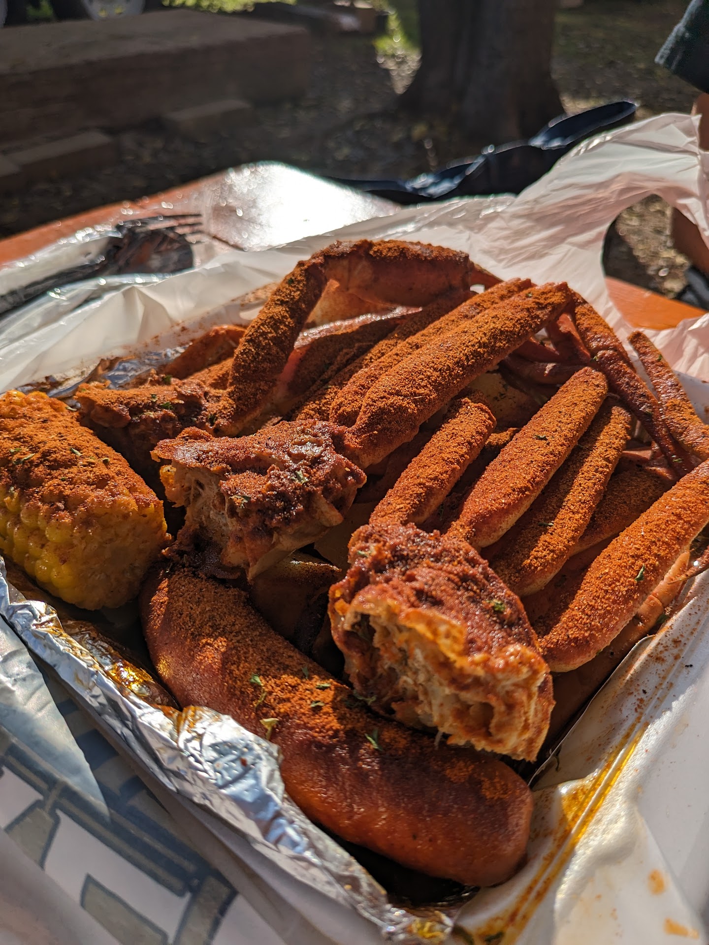 Adding to the mishap, the potatoes and sausage seemed to have missed their cooking lesson, proudly embracing the undercooked lifestyle. When I inquired about utensils to crack open the chilly crab, I was informed they only make appearances at the actual restaurant – a plot twist that left me feeling like I was catfished by my own dinner.