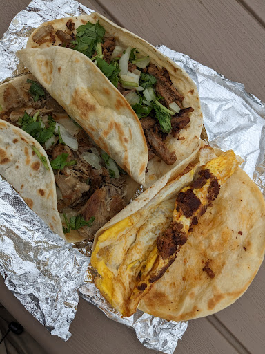 Fairly solid cheap taco trailer. Their basic breakfast taco, which for my purposes is bacon/egg/cheese, is good and cheap, as it should be, and comes on a decent tortilla. Good salsa, though it's not quite spicy enough for me.