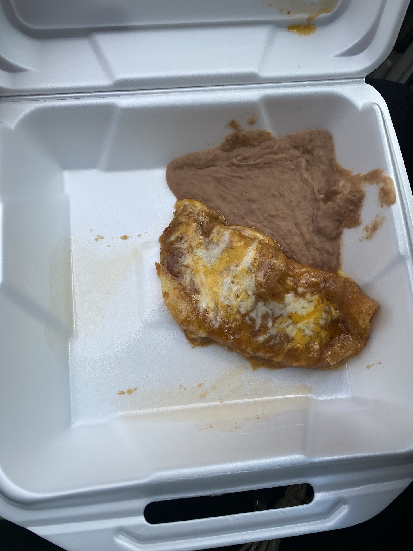 Read moreThe place is clean. The waitresses are nice buuuut while I was going up to pay for my food and ask for a to-go box, the waitress threw away all my leftover food and I asked for what was left on my plate to be replaced and at first they said no. I don’t mean to be rude but when you pay $24 for a meal and they throw a lot of it away, you expect to get replacement food for free. They handed me one enchilada and the cashier said they were getting it for me. I said “no, I paid for that.” Then they argued with me about getting my beans and didn’t replace the guacamole that was also tossed. I felt some type of way when it was so hard to get more food. $24 ($19 something plus tip) is obnoxious for enchiladas to begin with but not to be able to take home the leftover food was hard on my emotions. They refused to let me speak to the manager and when I finally talked them into giving me my beans it was like half a scoop.