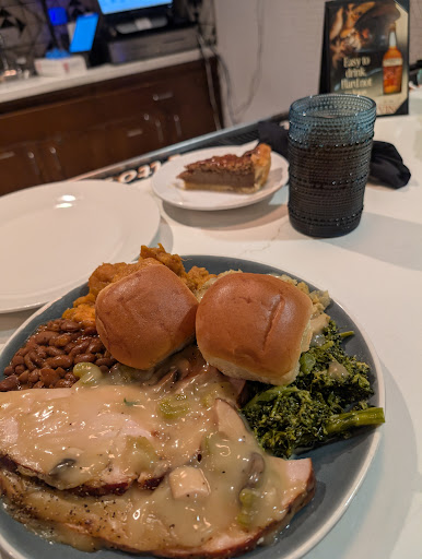 Great tasting food and awesome service. After a long trip, dinner close by the Indigo was preferable. Very convenient being in the hotel. Spacious seating where you don't feel crowded. A couple of tvs in the area (one behind the bar) if watching while eating is your style. Bathrooms are near the elevators in the hotel. Not sure about parking since I utilized the hotel valet for parking. Pricing per person with an adult beverage will run around $45. Great menu options, including vegan, vegetarian, and gluten free options. My dish was the lemon---(forgot the full name) salmon and my spouse had the braised beef short ribs. He loved his dish and so did I. The salmon dish came on top of risotto with fresh green beans and broccoli. Portion size was perfect. Very tasty, I only had to add a pinch of salt to the risotto, otherwise absolutely delicious. The bar tender acted as our waiter for dinner and was personable and very accommodating. Would definitely recommend. The restaurant has a street entrance and one within the hotel. Seating lends to the large wall of windows and doors facing the street. If being on display is not your thing, you can sit off to the side. I do believe the windows are tinted, so while your view is clear to the outside, non-patrons need to come in close contact with the...