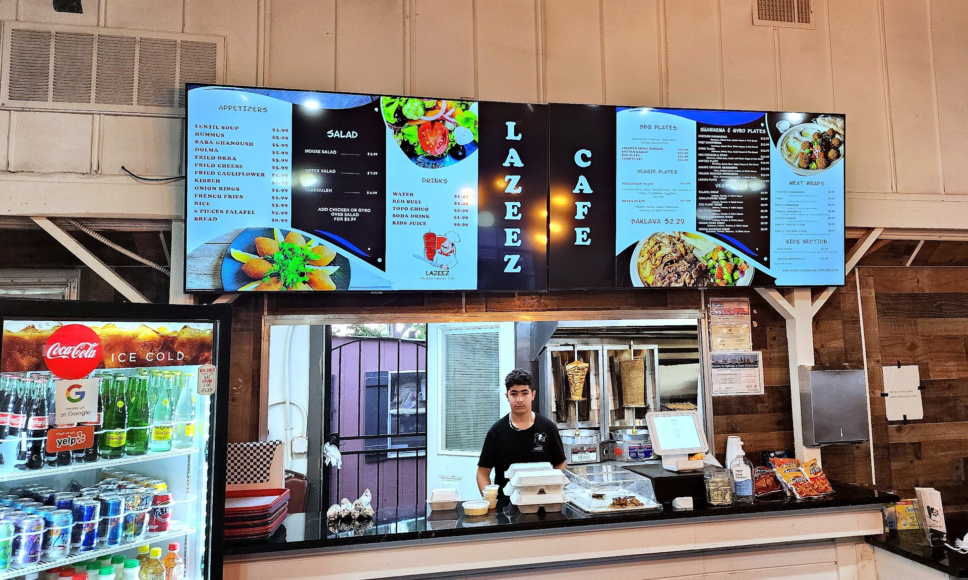 We always have a wonderful experience when we visit Lazeez Cafe. The staff are friendly and accommodating, and the restaurant is always clean and well kept. We love that we can see the cook and the food being prepared fresh in the back, which is a huge plus.