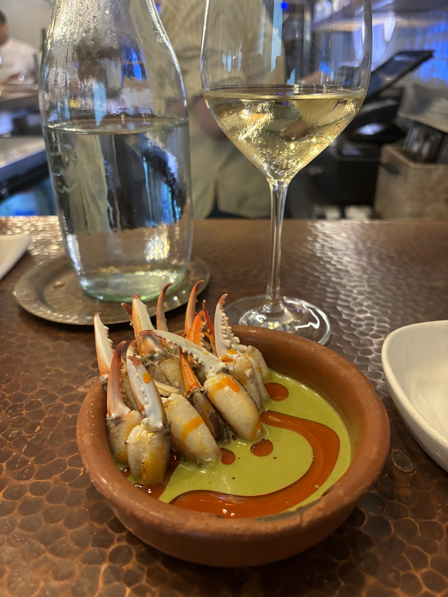 On the brighter side, once we were seated, we experienced a fantastic meal. The menu at hand was creative and well thought out. We ordered the crab fingers and had to get another - it was so tasty. Our steak was cooked a perfect medium rare with a delicious crust on the edges. I was skeptical about the crudo (blueberry ponzu - very interesting), but it came out fresh, bright, acidic (but not too acidic) and overall well balanced.