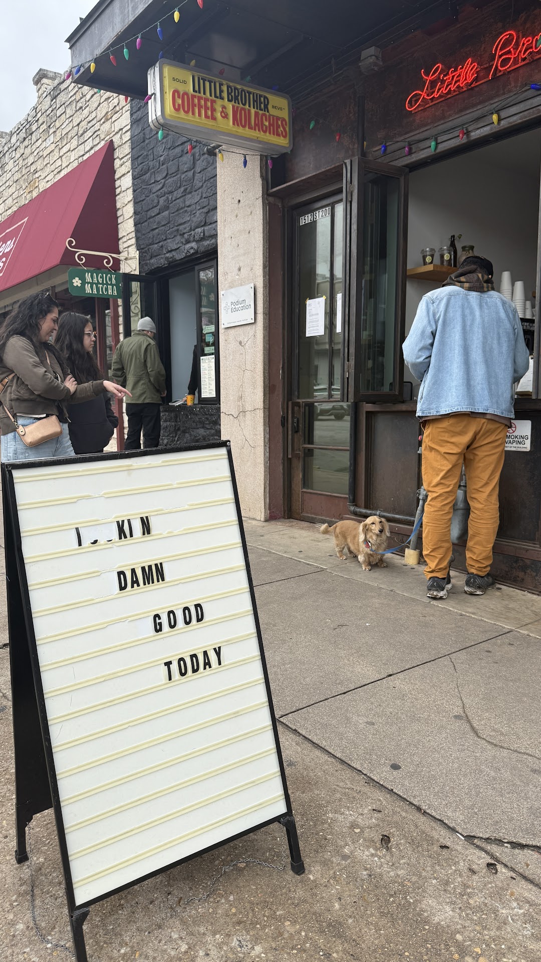 Read moreLittle Brother Coffee & Kolaches is a tiny, to-go coffee spot, with just one small table outside, making it more of a grab-and-go location rather than a sit-down café. The service window opens onto the street, and on the other side, it connects to a hat shop, which adds to the quirky charm of the space. While there are no seating options inside, the setup creates a unique atmosphere, making it feel like an integrated part of the store.