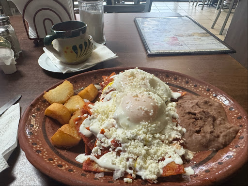 I had the chilaquiles and boy were they on point!! I got the red sauce and it was super tasty, the flavor was that perfect earthy spice that you get from de chile Guajillo!! Every chip covered perfectly in sauce, with crema and onions. The eggs that topped it were a perfect medium that oozed the yolk over my plate. The beans were on point with the made from home flavor, and the perfect texture. The salsa verde and the potatoes that came with my plate were also way too good, the salsa was heavy on the tomatillo but the spice level slapped!! 10 out of 10...