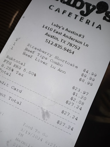 Read moreSo about 2 weeks I go through Luby’s drive thru at Anderson and 183. I order chicken fried chicken, green beans, mashed potatoes with brown gravy and a roll. I get all the way to my parent’s house in Pflugerville only to discover they gave me chicken fried steak instead. This I where the fun starts. I call back to the restaurant and push 1 for manager or employee no answer. I press 2 for online order no answer. I call back and press 3 for catering and finally get Joe who says he’s a manager. I explained to him what happened and he says no problem. He tells me he’s putting my name on a list and when she come back through the drive thru the next time my meal will be taken care of. So a week later I pull up to drive thru to get my free meal due to their error. The drive thru worker says I have to get out of my car and come inside so they can check the list. Never mind that I just waited in the drive thru line for 15 minutes. I left that day without my free meal due to their error. I go in today and they get the manager James to go check the list on the computer in the back of the store. I ask him why I have to be inconvenienced for their mistake and he says because it clogs up the drive thru line. How about get the order right in the first place? Since no one is answering any of their phones. No wonder they are closing Luby’s. Customer service is a thing...