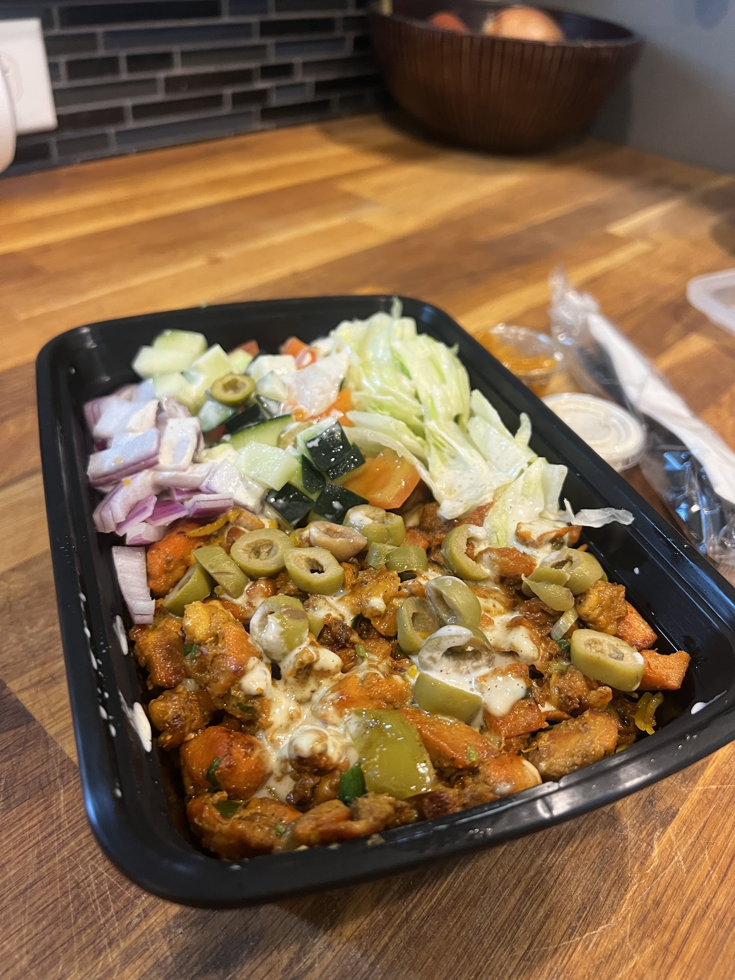 Gyro over Rice - this may have been the dish that convinced me to like olives. In addition to the olives, it also comes with diced tomato, lettuce, and red onion, as usual, and I received extra of the white sauce that already comes on top— a great touch, in my opinion. Generous portion and wonderful flavor. It’s not often that I will find real, whole cloves in a dish, I was so happy to find it in this one.