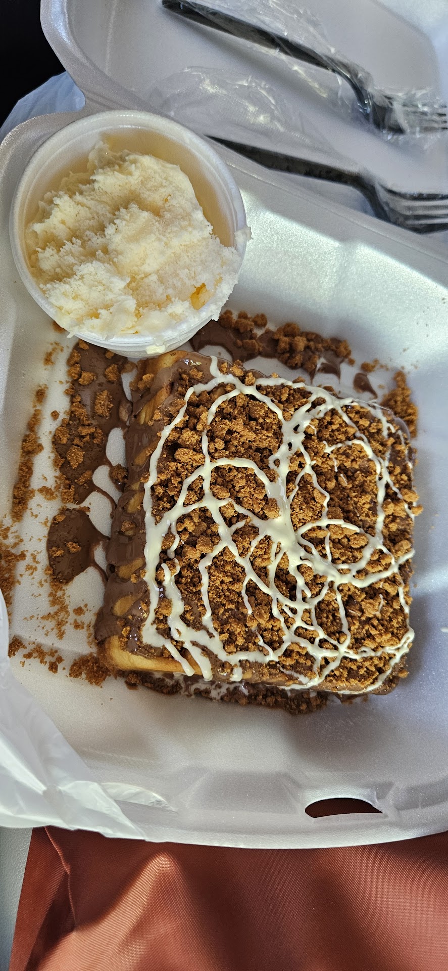 Ā Ā Ā Read morePlease let me state... this is a real gem of a place! My boyfriend and I went here as a midnight excursion. It was past midnight, and they were still open!! First, they are located across the way from iPic theater. It could be missed if you did not come from that direction. Second, it is a food truck. There is no real shade. Therefore, be prepared to take it to go so you do not roast under the hot Texas sun during the day. Third, they did such an amazing job decorating it. I got the triple chocolate waffle and my partner for it in crepe form. The flavors and care they put in it is out of this world! I've been in food service, and none of my tenured staff bothered to do this level of presentation!! 10/10! Highly recommend!! Waffle was light and crispy, and crepe was not gewy! Love! Love! Love!...