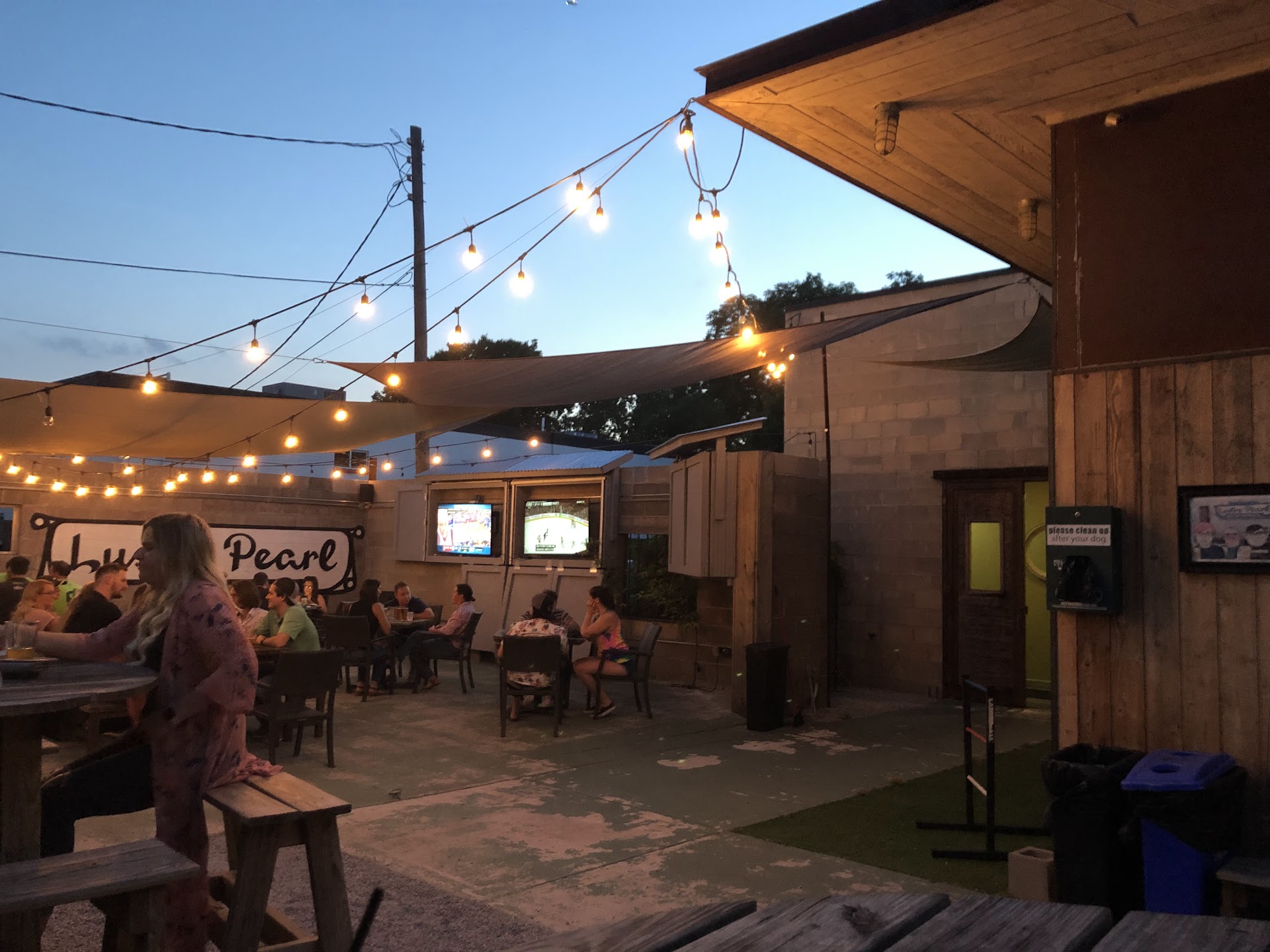 I love this bar. Lustre Pearl is perfect for those nights that you don't want to go downtown and be greeted by a bunch of 20-year-olds dancing on a bar or for those nights that you don't want to go crazy and want a chill, yet great night. I've had many a fun night at Lustre Pearl and I think the atmosphere of the bar definitely contributes. You walk in and you see a great patio with friendly dogs (yes! you can bring your dog!), hula hoops, table tennis, and a ton of benches to sit, chat, and relax. It's super chill and really cozy.