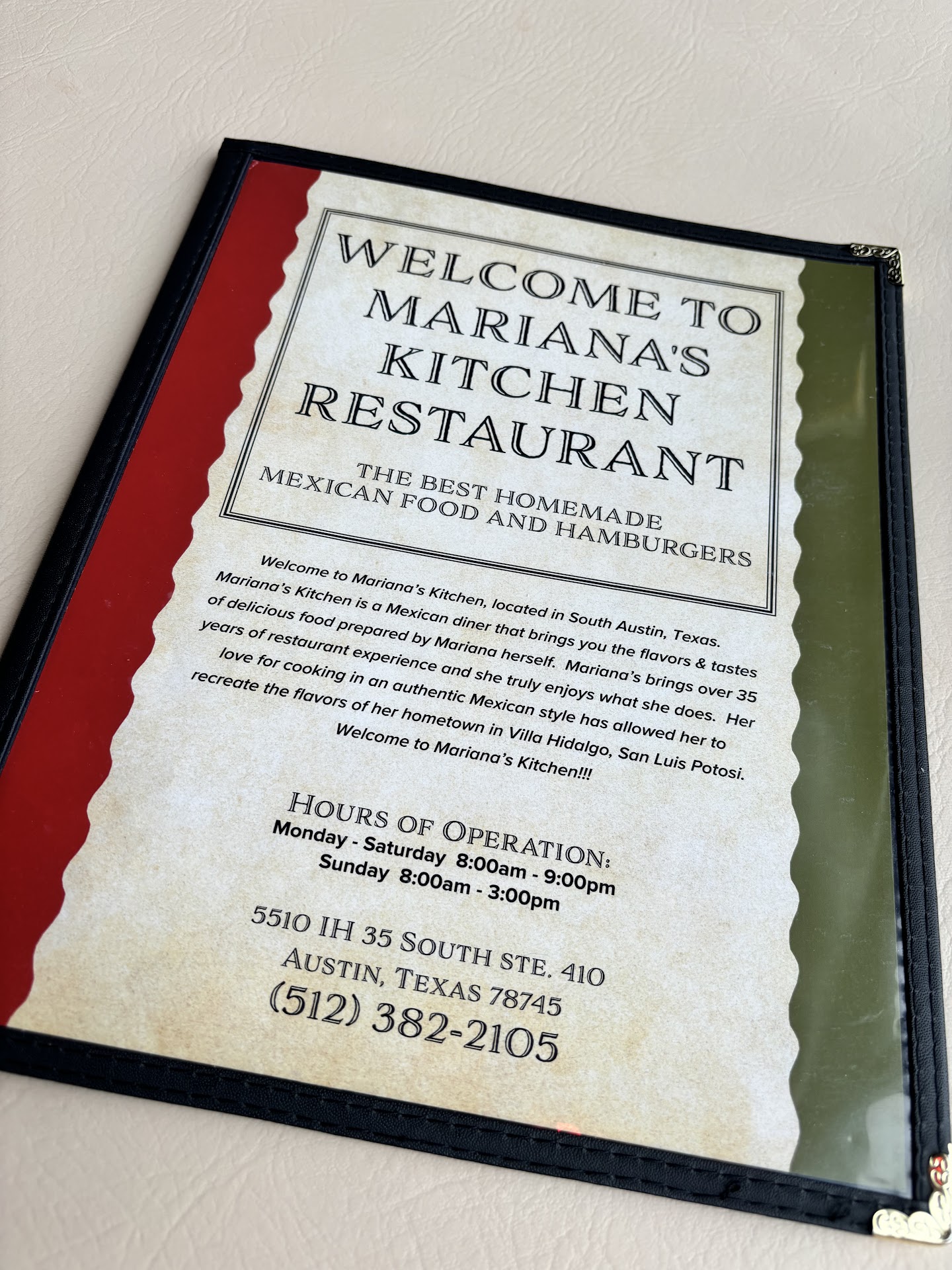 Excellent authentic South Austin finest "Mexican" food, flavor filled home style cooking only South Austin can offer. "Tejas" Mexican cuisine but equally a Top award winning heck of a Bacon Cheese burger and skinny fresh french fries. Family owned and worth the wait since now....people have gotten wind and are coming in droves! Suprise of the day best chicken caldo, equally the Menudo. The Salsa de la MaƱana is one of the best suthentic tasting in town. Wow just like my mom used to make....love it, come join me you will not go wrong. Barbacoa daily and better than most in high quality and flavor.