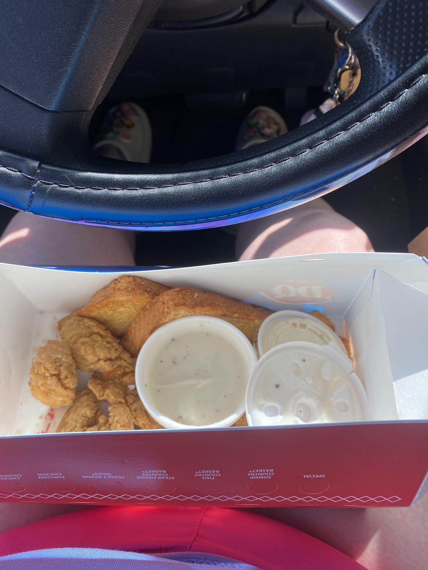 Read moreIf you are going there for food, read this. I didn't purchase any of their treats...so I can't speak to that...but here's my experience. First of all, it was Sunday and unfortunately for me, chickfila was closed. I have never been to DQ before... but I saw this huge line of cars and decided that if all of those people like it, maybe it's really good! We went and we ordered a chicken sandwich (which ended up being a chicken strip sandwich, large fries, chicken fried steak, and sweet tea. First of all...the sandwich had no taste to it. The chicken was dry and the bread was terrible. So the sandwich was really sad. The fries were also not good...the sweet tea was alright...and the chicken fried steak was terrible...also dry with no taste. We ordered the large meal, and they gave us small fries, we went back in and fixed it, they were nice about it...but for one full meal and an entrée, we paid $26?!!!! It was waaaaay overpriced, no, it was extremely over-priced!! Wait, there is another thing I forgot to mention...we could see the little 15 year olds playing in the back while making the food and touching everything with no gloves on...so in all...we ate there out of desperation because we were hungry... but you have...