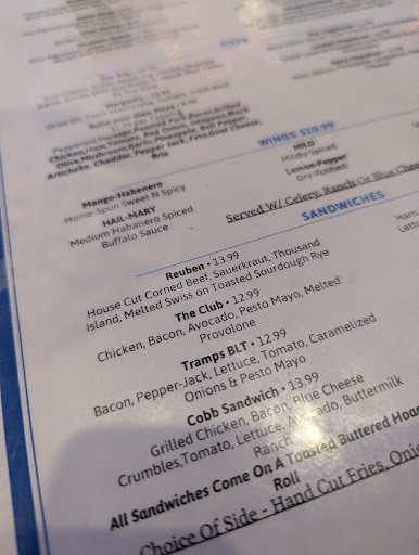 Not at Mister Tramp's. Mister Tramp's is friendly, laid back, and was completely happy not only to host us, but to give us priority seating in the back room whenever possible. Their back room features sofas, chairs, and a single massive projector that everyone can watch the game on. When we're not in the back room we're in the lounge, where we can see all the games just fine anyway. The food is excellent and well-priced, I especially like the pizza and the fish and chips. Some of the appetizers are plated just gorgeously, especially for a sports bar. The drink specials are crazy fun too. 2 dollar mimosas on Saturdays, 3 dollar wells all around, cheap beer, custom shots, the list goes on and on. Meanwhile the management has been nothing but crazy friendly and hospitable. We love Mister Tramp's and can't wait to go back over...