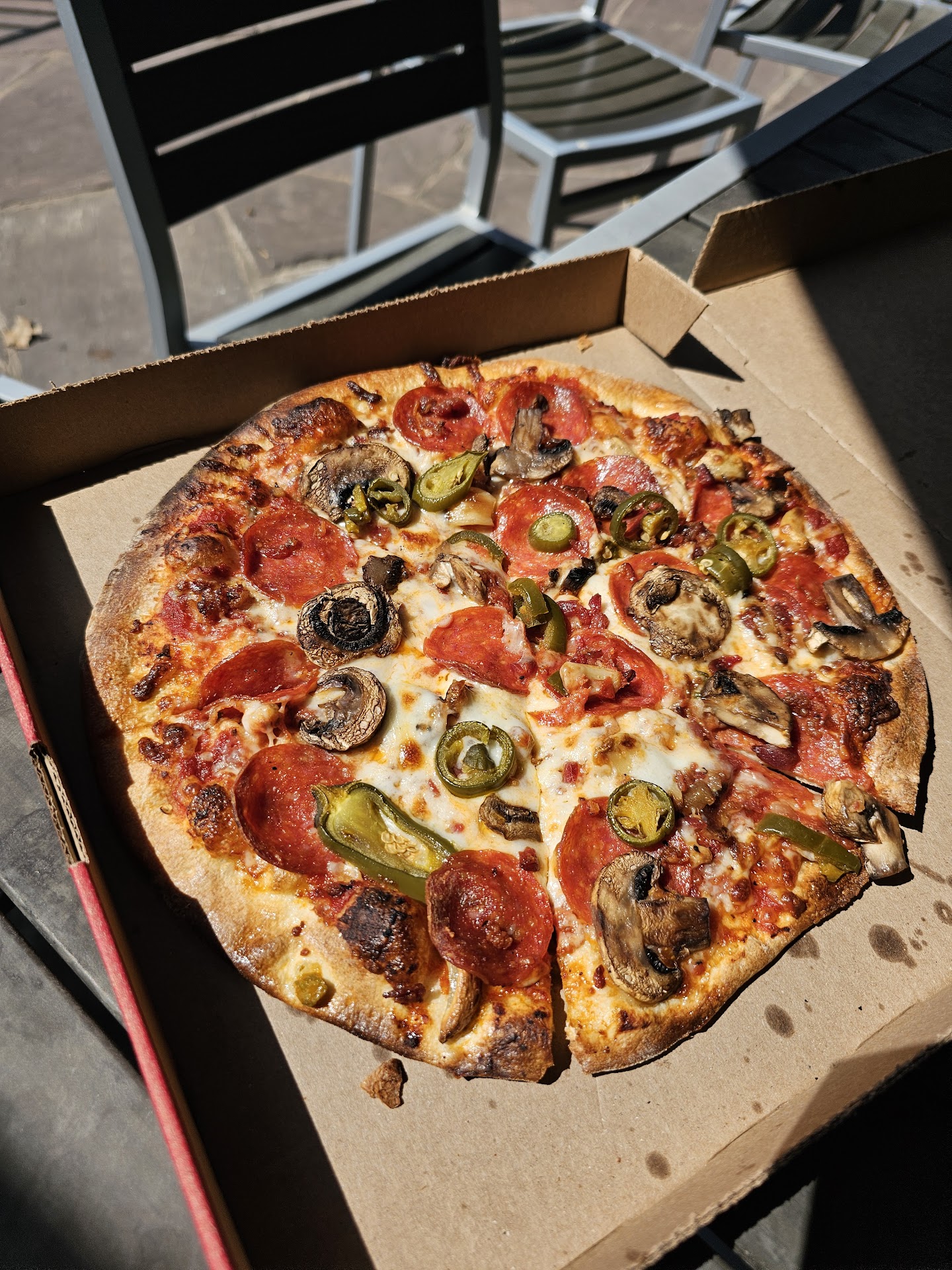Read moreI came in a little after 5 on Friday. The person taking my order was very nice and polite and made my pizza exactly how I wanted it. However, after I paid, we went to find a seat to wait. It was disgusting. All of the tables (ALL) were sticky and dirty, there was food on the tables and floors, it was gross. There was a family of 3 ahead of me and while I was waiting, their food was placed on the counter and no one called their name when it was done so it just sat there. They called my name and those pizzas were still sitting up on the counter so I told the customers their pizza was done and they werent too happy about having cold pizza. When it came time to get my pizza, I went to grab 2 plates (I ordered 2 pizzas) and she said Wait that one isnt for you. One was in a box (?) and one was not. I asked why one was in a box and she didnt know so I went to grab the pizza (in the box) and she said I'm not giving this to you if it's not yours. So I said it IS mine (it was what I had ordered)and she didnt want to let go so I had to forcefully take it from her hand! She was so rude. We ate outside because the inside was so dirty and sticky. It was gross. The pizza was ok. My sons wasn't as done as we asked for. I dont believe we will be coming back...