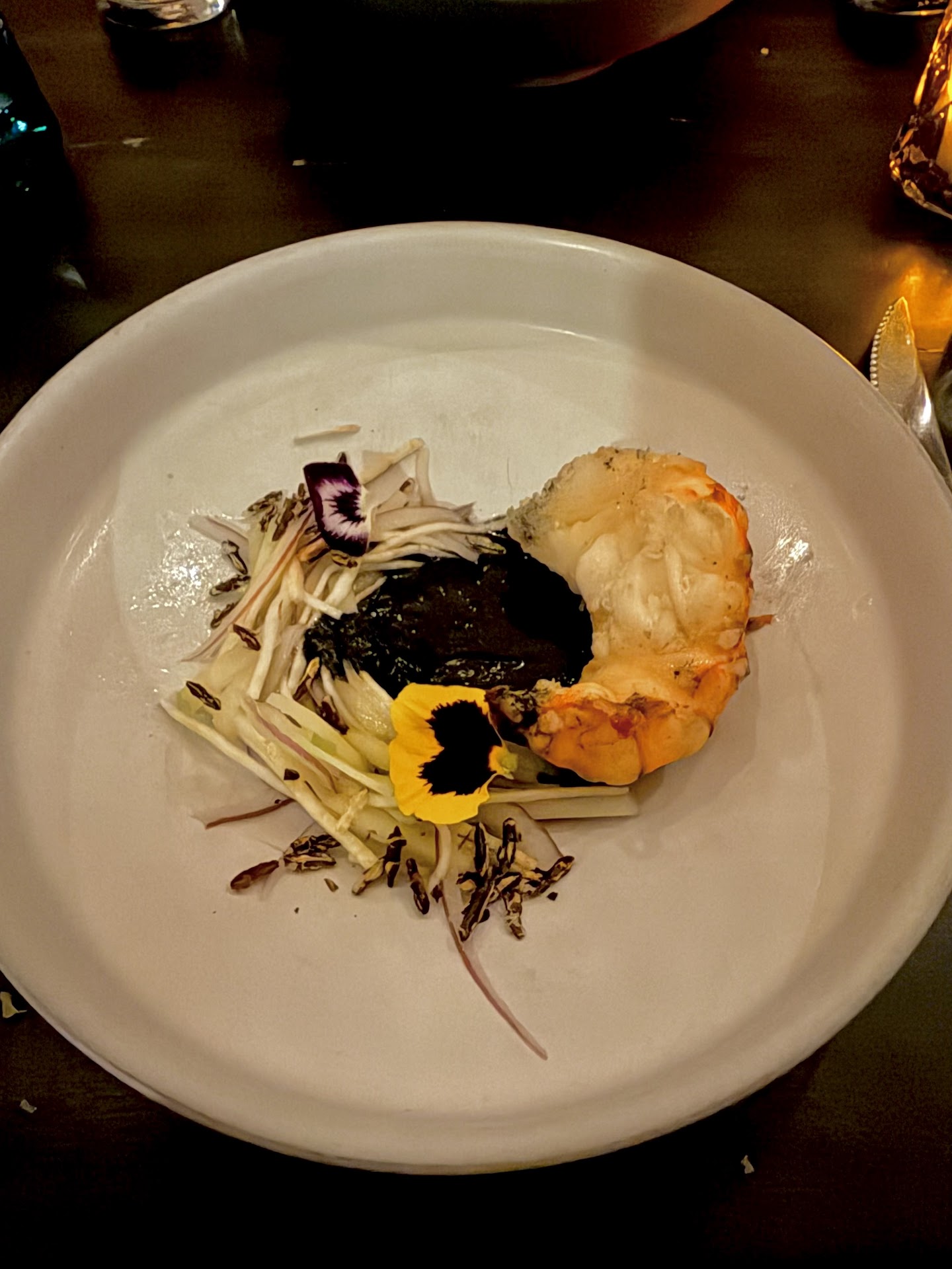 • Second Course: The Langosta (lobster in squid ink) was a showstopper. It was rich, beautifully presented, and every bite felt indulgent. This was our favorite course of the night. *They served my husband the Pato which was replaced immediately.