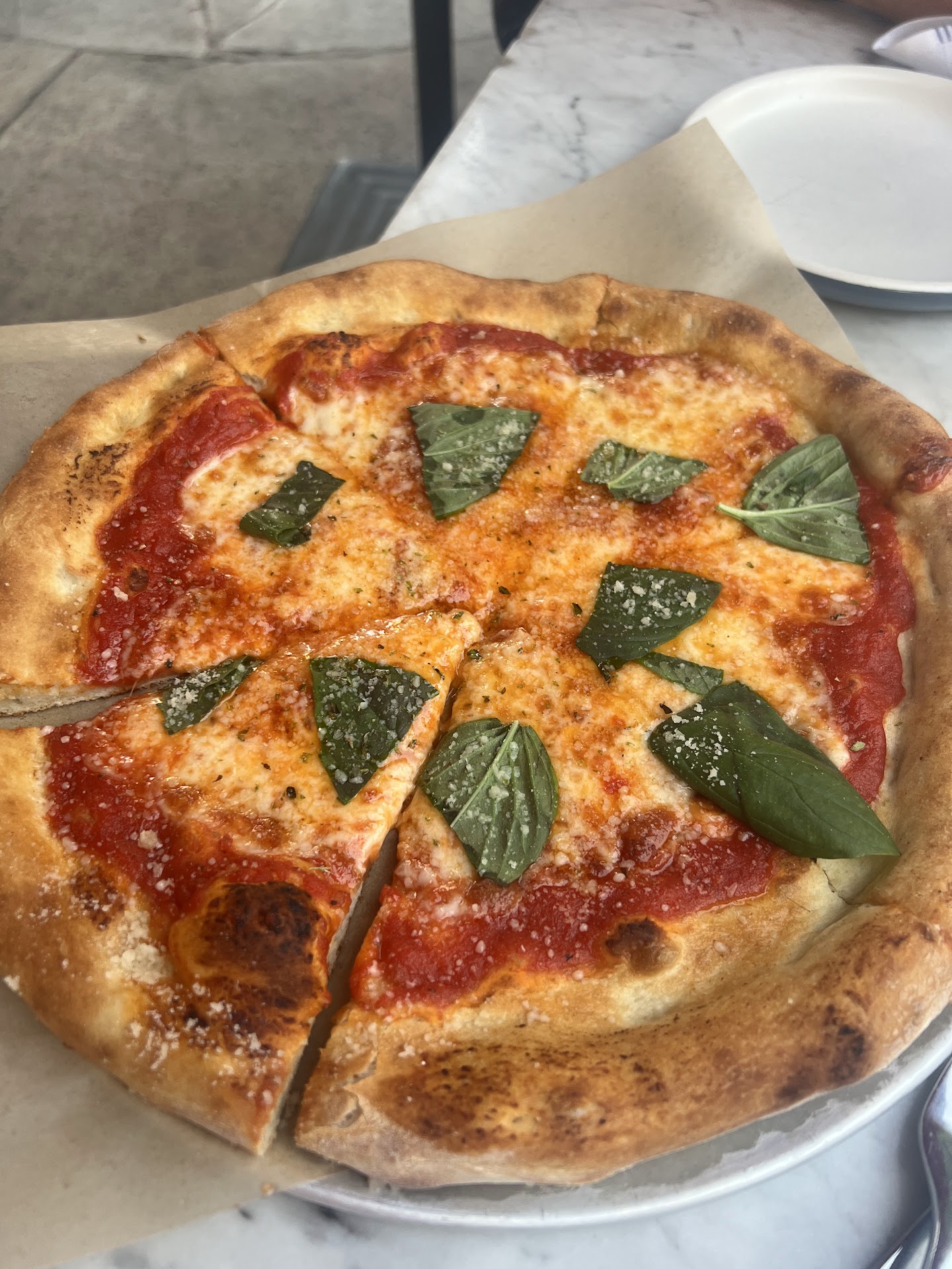 This time, our pizza, which is on the surface one of the tastiest pizzas I’ve had in Austin, had way too much crust. It looked like the cooks had rushed to put in a bunch of pizzas at the same time, and we got one of them.